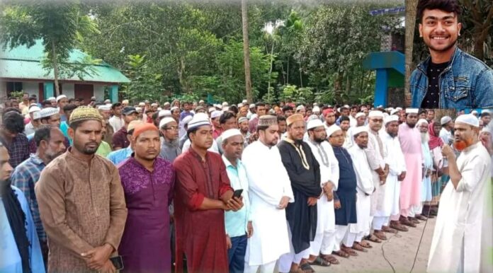 সিরাজুল ইসলাম, রাজগঞ্জ : যশোরের মণিরামপুর উপজেলার রাজগঞ্জে সড়ক দুর্ঘটনায় নিহত ছাত্রলীগ কর্মী নাঈম হোসেনের দাফন সম্পন্ন হয়েছে। শুক্রবার (১৪ জুলাই) সকাল ১০ টার দিকে উপজেলার রাজগঞ্জের চালুয়াহাটি ইউনিয়নের শয়লা এতিম খানা মাদ্রাসা মাঠে জানাযা শেষে পারিবারিক কবরস্থানে তাকে দাফন করা হয়। নিহত নাঈম হোসেন চালুয়াহাটি ইউনিয়নের শয়লা গ্রামের তরিকুল ইসলাম সানার ছেলে। জানা যায়, আওয়ামীলীগের কেন্দ্রীয় ধর্ম বিষয়ক উপ-কমিটির নির্বাহী সদস্য আলহাজ্ব এস এম ইয়াকুব আলী, উপজেলা কৃষকলীগের সভাপতি আবুল ইসলাম, উপজেলা স্বেচ্ছাসেবকলীগের সদস্য শরিফুল ইসলাম, মাহাবুর রহমান, যুবলীগ, ছাত্রলীগের নেতা কর্মি সহ এলাকার সকল স্তরের মানুষ উপস্থিত হন।