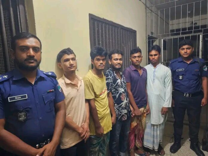 গ্রেফতারকৃতরা হলো মোঃ ফিরোজ মোল্লা (২৮) পিতা-মৃত আবুল হোসেন মোল্লা, সাং-নওয়াপাড়া পাঁচকবর, থানা-অভয়নগর মোঃ রিপন মোল্লা (২৪) পিতা-মোঃ হাফিজ মোল্লা, সাং-মধ্য দিয়াপাড়া, থানা-অভয়নগর, মোঃ সাইদুল শেখ (২০) পিতা-সুলতান শেখ, সাং-উত্তর দিয়াপাড়া, থানা-অভয়নগর সাকিব হোসেন (২৬) পিতা-আবু বক্কর, সাং-নওয়াপাড়া পাঁচকবর, থানা-অভয়নগর, জেলা-যশোর, মোঃ শফিকুল ইসলাম (২৮) পিতা-মোঃ জহির উদ্দিন শেখ, সাং-পদ্মাবিলা পূর্বপাড়া, থানা-অভয়নগর জেলা-যশোর ও মোঃ আজাহারুল ইসলাম (৪৯), পিতা-মৃত আঃ মালেক, সাং-হারাগাছা, থানা-কাউনিয়া, জেলা-রংপুর, -(নোয়াপাড়া পাঁচকবর কামাল ফকির এর ভাড়াটিয়া)