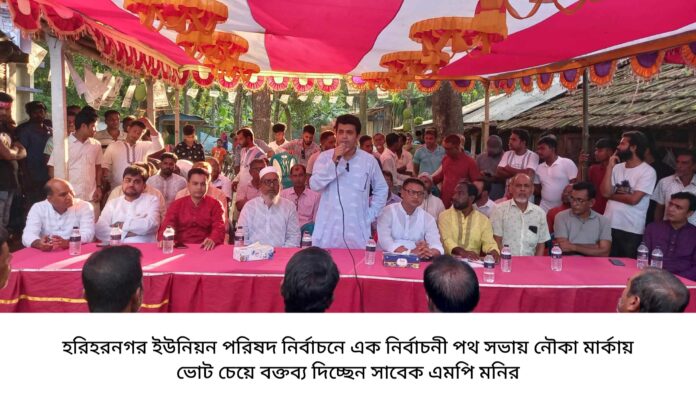 আছাদুজ্জামান, হরিহরনগর প্রতিনিধি : যশোরের মণিরামপুর উপজেলার হরিহরনগর ইউনিয়নের নির্বাচনে নৌকা মার্কায় ভোট চেয়েছেন জাতীয় সংসদের সাবেক সংসদ সদস্য এড. মনিরুল ইসলাম মনির। তিনি শনিবার (১৫ জুলাই) বিকেলে আওয়ামী লীগের মনোনীত নৌকা মার্কার প্রার্থী মাস্টার জহুরুল ইসলামের পক্ষে ইউনিয়নের এনায়েতপুর বাজারে পথসভায় এ প্রচারণা করেন।