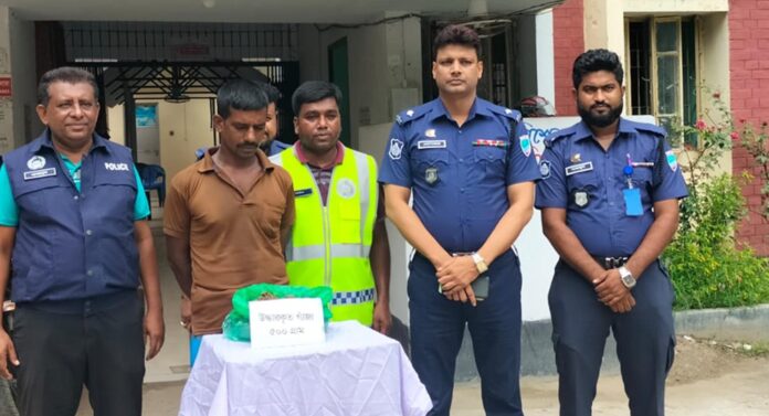 শালিখা (মাগুরা) প্রতিনিধিঃ মাগুরার শালিখায় ৫শ গ্রাম গাঁজাসহ এক মাদক ব্যবসায়ীকে আটক করেছে শালিখা থানা পুলিশ। জানা যায়, গোপন সংবাদের ভিত্তিতে মাদকদ্রব্য উদ্ধার এবং বিশেষ অভিযান পরিচালনা করে গতকাল দিবাগত রাত আনুমানিক ১০.০৫ সময় এস আই আশরাফুল আলম, এএসআই মোঃ লিটন হোসেনসহ সঙ্গী ও ফোর্স নিয়ে তালখড়ি গ্রামের জিতেন রায় এর বাড়ির পিছনে মেহেগুনী বাগানে অভিযান পরিচালনা করে মহেন্দ্রনাথ বিশ্বাস ছেলে কানু বিশ্বাস (৩৮) কে আটক করা হয়। শালিখা থানার অফিসার ইনচার্জ মোঃ মোশাররফ হোসেন বলেন, মাগুরা জেলা সুযোগ্য পুলিশ সুপারের দিক নির্দেশনায় মাদক বিরোধী অভিযান পরিচালনা করছে শালিখা থানা পুলিশ। তারই অংশ হিসাবে ৫শ গ্রাম গাঁজা সহ একজনকে আটক করা হয় । তার বিরুদ্ধে্ শালিখা থানায় একটি মামলা হয়েছে।