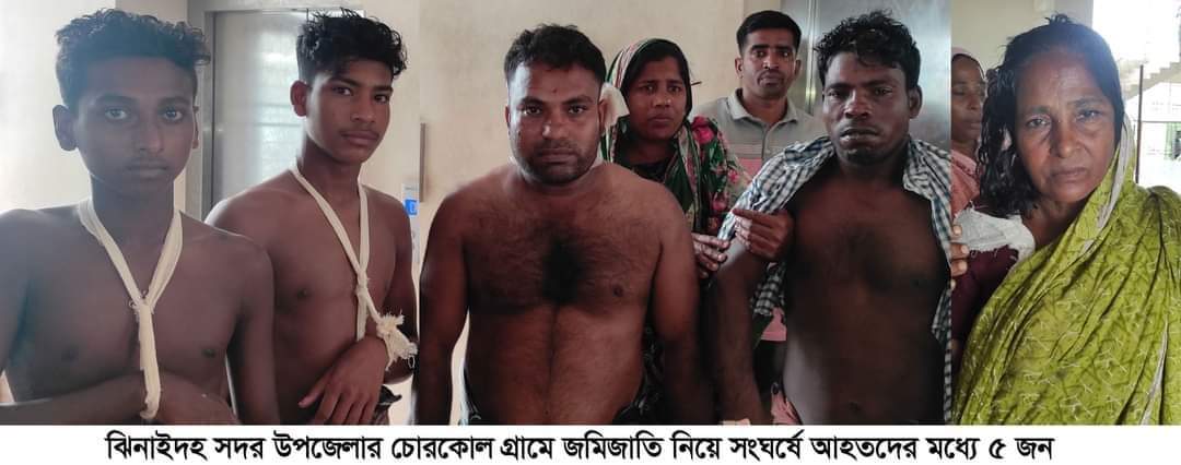 কামরুজ্জামান লিটন ঝিনাইদহ : ঝিনাইদহ সদর উপজেলার চোরকোল গ্রামে শুক্রবার বিকালে জমিজাতি নিয়ে সংঘর্ষে উভয় পক্ষের অন্তত ১০/১২ জন আহত হয়েছেন। আহতদের ঝিনাইদহ সদর হাসপাতালে ভর্তি করা হলে ওয়ার্ডের মধ্যে তারা মারামারিতে লিপ্ত হয়। হাসপাতালে চিকিৎসাধীন চোরকোল গ্রামের বিপুল শনিবার বিকালে অভিযোগ করেন, তাদের ৫ একর ৫৪ শতক জমি নিয়ে আদালতে মামলা চলছিল। মামলায় তারা জিতে যান। রায় ঘোষনার পর বিবাদী পক্ষ আব্দুল লতিফ ধাপকের ছেলেরা জমিতে জোর পুর্বক চাষ করতে যায়। বাধা দিলে তারা হামলা চালিয়ে আহত করে। হামলায় তিনিসহ আকরাম হোসেন, জহুরা খাতুন, শিমুল ও সলোক আহত হন। আহত জহুরা খাতুন জানান, আদালত তাদের পক্ষে রায় দিয়েছে। অথচ তারা বিজ্ঞ আদালতের আদেশ না মেনে জোর করে জমি দখল করে নিয়েছে। তিনি জানান, লতিফ ধাপকের ছেলে আব্দুজ জলিল, খলিলুর রহমান, আব্দুল জবাবার, সেলিম, আলম ও খলিলের ছেলে তেছান তাদের উপর লাঠিসোটা নিয়ে হামলা করে। এলাকার ইউপি মেম্বর আশরাফুল ইসলাম জানান, মারামারিতে উভয় পক্ষের লোকজন আহত হয়ে হাসপাতালে এসেছে। এই জমি নিয়ে বহুবার শালিস হয়েছে, কোন সুরাহা হয়নি। স্থানীয় বাজারগোপালপুর পুলিশ ক্যাম্পের এসআই উত্তম কুমার মারামারির খবর নিশ্চিত করে জানান, জমিজাতি নিয়ে মারামারির সুত্রপাত। এ ঘটনায় উভয় পক্ষের লোকজন আহত হয়েছে। একপক্ষ অভিযোগ দিলেও আরেক পক্ষ দেয়নি। তিনি বলেন, তদন্ত করে দায়ীদের বিরুদ্ধে ব্যবস্থা গ্রহন করা হবে।