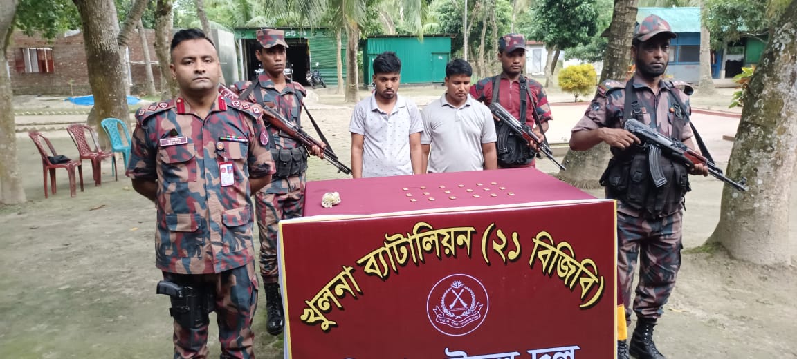 সোমবার বিকেলে দৌলতপুর গ্রামের প্রাইমারি স্কুলের পাশ থেকে ভারতে পাচারের সময় দুই পাচারকারীকে স্বর্নসহ হাতে নাতে আটক করা হয় বলে জানান খুলনা ২১বিজিবি ব্যাটেলিয়ানের অধিনায়ক লেফটেন্যান্ট কর্ণেল তানভীর রহমান।