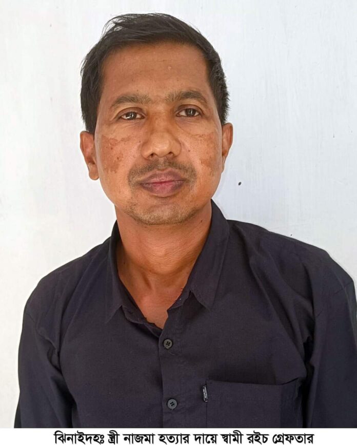 কামরুজ্জামান লিটন ঝিনাইদহ : ঝিনাইদহের শৈলকুপায় স্ত্রী হত্যার দায়ে ঘাতক স্বামী রইচ উদ্দীন মন্ডলকে গ্রেফতার করেছে পুলিশ। সোমবার মধ্য রাতে টাঙ্গাইল জেলার মির্জাপুর থানা এলাকা থেকে তাকে গ্রেফতার করা হয়। তিনি শৈলকুপার চর ত্রিবেনী গ্রামের আজিজ মন্ডলের ছেলে। শৈলকুপা থানার ওসি আমিনুল ইসলাম জানান, স্ত্রী নাজমা খাতুনকে হত্যার পর রইচ মন্ডল পালিয়ে ছিল। তাকে ধরতে তথ্য প্রযুক্তি ব্যবহার করা হয়। মামলার তদন্তকারী কর্মকর্তা এস আই আনোয়ার হোসেনের নেতৃত্বে একদল পুলিশ অভিযান চালিয়ে তাকে গ্রেফতার করতে সমর্থ হন। ওসি আরো জানান, রোববার মধ্য রাতে শৈলকুপার পদমদি গ্রামে নাজমা খাতুনকে হত্যা করে তার স্বামী রইচ মন্ডল। পারিবারিক ও দাম্পত্য কলহের জের ধরে তাকে হত্যা করা হয় বলে জিজ্ঞাসাবাদে রইচ মন্ডল স্বীকার করেছে। এদিকে মঙ্গলবার দুপুরে আদালতের মাধ্যমে তাকে জেল হাজতে পাঠানো হয় বলে তদন্তকারী কর্মকর্তা এস আই আনোয়ার হোসেন জানান।