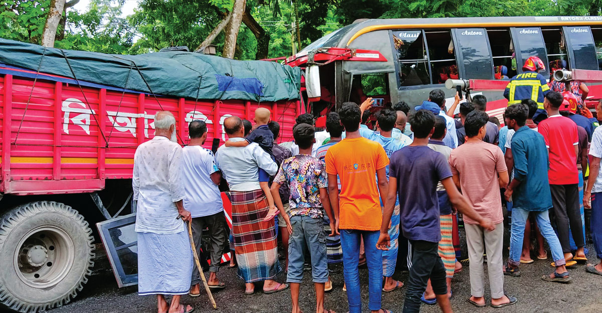 নড়াইলে বাস-ট্রাকের মুখোমুখি সংঘর্ষে ৫ জন আহত
