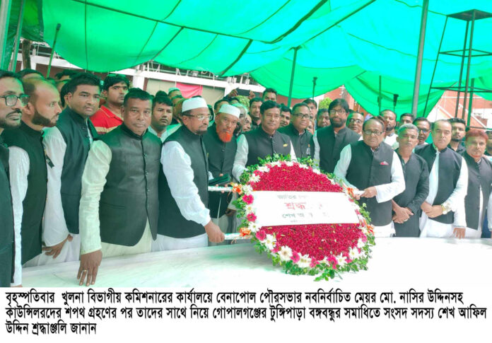 যশোর স্পেশাল বেনাপোল পৌরসভার নবনির্বাচিত মেয়র নাসির উদ্দিনসহ কাউন্সিলরদের শপথ, বঙ্গবন্ধুর সমাধিতে শ্রদ্ধাঞ্জলি