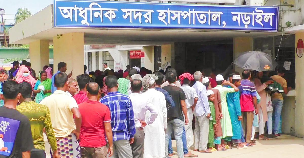 সংশ্লিষ্ট সূত্রে জানা গেছে, ১০০ শয্যার নড়াইল আধুনিক সদর হাসপাতাল জেলার ৮ লক্ষাধিক জনগোষ্ঠীর উন্নত স্বাস্থ্যসেবার একমাত্র ভরসাস্থল। সারা বছরই এখানে থাকে রোগীদের ভিড়। এই মৌসুমে বৃষ্টির সঙ্গে ভ্যাপসা গরমে শিশুসহ নানা বয়সের মানুষ বিভিন্ন রোগে ব্যাপক ভাবে আক্রান্ত হওয়ায় বর্তমানে হাসপাতালে রোগীদের ভীড় অসহনীয় পর্যায়ে পৌঁছেছে। তার উপর ডেঙ্গু মরার উপর খাড়ার ঘা হয়ে দেখা দিয়েছে।