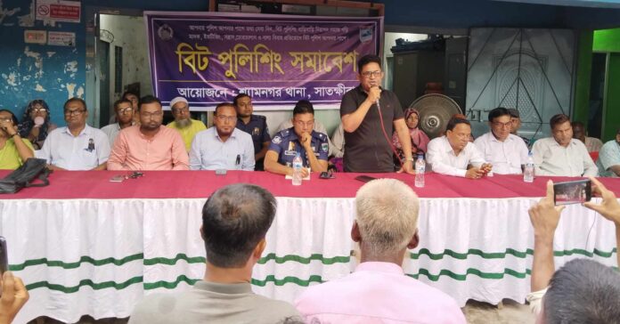 মনিরুজ্জামান জুলেট শ্যামনগর সাতক্ষীরা প্রতিনিধিঃ সাতক্ষীরার শ্যামনগর সদর ইউনিয়ন পরিষদ চত্বরে শ্যামনগর থানার আয়োজনে বিট পুলিশিং কমিটির সভা অনুষ্ঠিত হয়। বৃহস্পতিবার(১০ আগষ্ট) বেলা ৫ টায় শ্যামনগর থানার অফিসার ইনচার্জ মো.আবুল কালাম আজাদ এর সভাপতিত্বে প্রধান বক্তা হিসেবে বক্তব্য রাখেন সদর ইউনিয়ন পরিষদের সাবেক চেয়ারম্যান ও শ্যামনগর পৌরসভার রুপকার সাতক্ষীরা নারী ও শিশু নির্যাতন দমন ট্রাইব্যুনালের পিপি এড. জহুরুল হায়দার বাবু। অনুষ্ঠানে বক্তব্য রাখেন নওয়াবেকী মহাবিদ্যালয়ের অধ্যক্ষ জুলফিকার আল মেহেদী লিটন, প্রধান শিক্ষক কৃষ্ণানন্দ মুখার্জি, প্রধান শিক্ষক আব্দুস সাত্তার,প্রধান শিক্ষক দীনেশ চন্দ্র মন্ডল, প্রধান শিক্ষক পরিমল কর্মকার, শ্যামনগর উপজেলা রিপোর্টার্স ক্লাবের সভাপতি গাজী আল ইমরান, গোপালপুর প্রাথমিক বিদ্যালয়ের প্রধান শিক্ষক সেলিনা কাজল। এসময় উপস্থিত ছিলেন সাবেক শিক্ষক বীর মুক্তিযোদ্ধা মুজিবুর রহমান, বীর মুক্তিযোদ্ধা মাষ্টার নজরুল ইসলাম, প্রধান শিক্ষক মিজানুর রহমান লাভলু,প্রেসক্লাবের উপদেষ্টা শেখ আফজাল হোসেন,সহসভাপতি এসকে সিরাজুল ইসলাম, উপজেলা রিপোর্টার্স ক্লাবের সাধারণ সম্পাদক আমজাদ হোসেন মিঠু, প্রধান শিক্ষক সিরাজুল ইসলাম,শ্যামনগর থানার সেকেন্ড অফিসার রাজীব রায়হান।অনুষ্ঠানে বক্তারা তাদের বক্তব্য অতি বিলম্বে পৌরসভার নির্বাচন দাবী করেন।তারা বলেন,অচিরেই নির্বাচন না দিলে শ্যামনগরের উন্নয়ন ব্যহত হবে।শ্যামনগর থানার অফিসার ইনচার্জ মো. আবুল কালাম আজাদ বলেন,আমার পাশে যেতে কোন দালাল লাগেনা।যে কোন সমস্যা নিয়ে আমার পাশে আসবেন।তিনি বলেন,আমি শান্ত শ্যামনগর কে অশান্ত হতে দেবনা।আপনারা আমার কাজে সহযোগিতা করবেন,আমি যেন আপনাদের সেবা করতে পারি।জহুরুল হায়দার বাবু তার বক্তব্যে বলেন,শান্ত শ্যামনগরকে কোনভাবেই অশান্ত হতে দেওয়া হবে না। যারা আমার দিকে ঢিল ছুড়ে মারবে তাকে আমি ফুল দিয়ে বরণ করে নিতে চাই। আমি পৌরসভার মেয়র হলে সকল দরিদ্রদের ট্যাক্স মওকুফ করে দেব।
