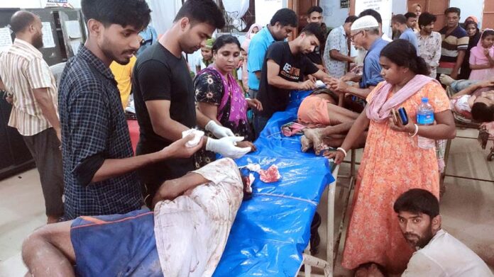নড়াইল প্রতিনিধি : নড়াইল সদর উপজেলার দেবভোগ গ্রামে পাট কাটাকে কেন্দ্র করে দুই গ্রুপের সংঘর্ষে রাধা পল্øব (৭৫) নামে এক কৃষক নিহত হয়েছেন। দুই গ্রুপের সংঘর্ষে এ সময় কমপক্ষে ১১ জন আহত হয়েছেন। বুধবার (১৬ আগস্ট) বেলা ১১ টায় সদর উপজেলার শেখহাটি ইউনিয়নের দেবভোগ গ্রামে এ ঘটনা ঘটে। উজ্জ্বল রায়, জেলা প্রতিনিধি নড়াইল থেকে জানান,