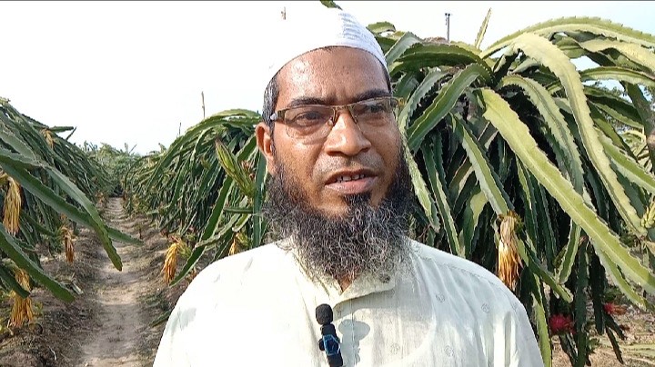 মো: আবুবক্কর সিদ্দিক : যশোরের শার্শা উপজেলায় সর্বপ্রথম বাণিজ্যিকভাবে নয় বছর আগে ড্রাগন ফলের চাষ শুরু করেন রাসেদুল ইসলাম । উপজেলার সীমান্তবর্তী ডিহি ইউনিয়নের সালতা ফুলসারা গ্রামের রাসেদুল ইসলাম চলতি বছরে প্রায় আট বিঘা জমিতে ড্রাগন চাষ করে ভাগ্যের চাকা ঘুরিয়ে ফেলেছেন। তাদের দেখাদেখি উপজেলায় বাণিজ্যিকভাবে ড্রাগন চাষ করে অনেকে স্বাবলম্বী হয়েছে। চাষী রাসেদুল বলেন, ঢাকা ও খুলনার বাজারে ড্রাগনের ব্যাপক চাহিদা রয়েছে। ঢাকার কারওয়ান বাজারে এ বছরের প্রথমে ড্রাগন ফল বিক্রি করেছি প্রতিকেজি ৭শ’ টাকা দরে। এখন বিক্রি হচ্ছে তিন’শ থেকে চার’শত টাকায় । তিনি আরও বলেন, বিঘা প্রতি জমিতে ড্রাগন চাষ করতে সর্বমোট খরচ হয় ২ লাখ থেকে ৩ লাখ টাকা। বছর শেষে আবহাওয়া অনুকূলে থাকলে দুই থেকে তিন লাখ টাকা ড্রাগন ফল বিক্রির আশা করছেন তিনি। সাত বিঘা জমিতে ড্রাগন চাষ করেছেন রাসেদুল। জানা যায়, ‘পরীক্ষামূলকভাবে নয় বছর আগে ড্রাগন চাষ শুরু করেন। এবছর কয়েক ধাপে কয়েক লক্ষ টাকার ফলন বিক্রি হয়েছে। আজ আমি স্বাবলম্বী। এটি একটি লাভজনক চাষ। তবে প্রথম অবস্থায় অন্য চাষের থেকে টাকা পয়সা খরচ বেশি হয়। প্রথম থেকেই কৃষি সম্প্রসারণ থেকে সার্বিক সহযোগিতা পেয়েছে বলেও জানান রাসেদুল ইসলাম। এ বিষয়ে উপজেলার কৃষি সম্প্রসারণ অফিসার তরুন বালা বলেন, দিন দিন শার্শাতে বানিজ্যিক ড্রাগন বাগান বৃদ্ধি পাচ্ছে। ড্রাগন চাষে রাসায়নিক সার ও কীটনাশক ব্যবহার বেশি প্রয়োজন হয় না। পর্যাপ্ত পরিমান জৈব সার ও সঠিক পরিচর্যা করলে ভালো ফলন পাওয়া যায়। জাতভেদে এবং বাগান ব্যবস্থাপনার উপর নির্ভর করে ১২-১৪ মাস বয়স হওয়ার পর গাছে ফল আসতে শুরু করে। বাজারে ড্রাগন ফলের ব্যাপক চাহিদা রয়েছে। ভালো মানের ড্রাগনফল প্রতি কেজি বাজারে ৩শ’ থেকে সাড়ে ৪শ’ টাকা দরে বিক্রি হচ্ছে।