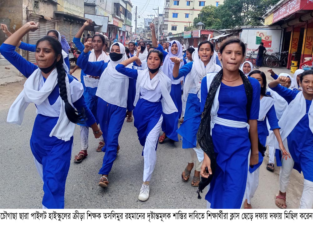 চৌগাছা ছারা পাইলট মাধ্যমিক বালিকা বিদ্যালয়ে রোববার সকালে সমাবেশ চলাকালিন সময়ে অন্তত সাত ছাত্রীকে বেধড় মারপিট, গালমন্দ ও স্কুল ড্রেস ছিড়ে ফেলেন বিদ্যালয়ের ক্রীড়া শিক্ষক বহুল আলোচিত তসলিমুর রহমান ওরফে তসলিম। তার এই জঘন্যতম অপরাধে এক শিক্ষার্থী অভিভাবককে নিয়ে যায় উপজেলা নির্বাহী অফিসারের কার্যালয়ে। ঘটনাটি আমলে নিয়ে নির্বাহী অফিসার তদন্তপূর্বক প্রয়োজনীয় ব্যবস্থা গ্রহনে উপজেলা শিক্ষা কর্মকর্তাকে নির্দেশ দেন।