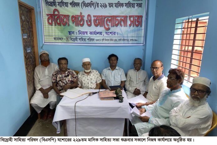 যশোর প্রতিনিধি : বিদ্রোহী সাহিত্য পরিষদ (বিএসপি) যশোরের ২২৯তম মাসিক সাহিত্য সভা শুক্রবার (১ সেপ্টেম্বর) সকাল ১০ টায় নিজস্ব কার্যালয়ে অনুষ্ঠিত হয়। এসময় প্রধান অতিথি হিসেবে বক্তব্য রাখেন বিশিষ্ট গবেষক ও শিক্ষাবিদ ড. মো. মুস্তাফিজুর রহমান। বিশেষ অতিথি হিসেবে বক্তব্য রাখেন বিশিষ্ট কলামিন্ট ও বীরমুক্তিযোদ্ধা আমিরুল ইসলাম রন্টু, বিএসপির সাবেক সভাপতি এডিএম রতন।
