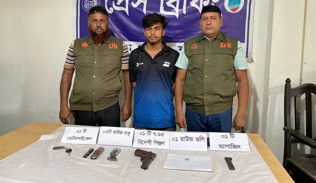 যশোর অফিস ; যশোরে অস্ত্র, গুলি ও চাকুসহ সোহান হোসেন ওরফে তামিম নামে এক যুবককে আটক করেছে ডিবি পুলিশ। আটক তামিম সদর উপজেলার কায়েতখালী গ্রামের জাকির হোসেনের ছেলে।