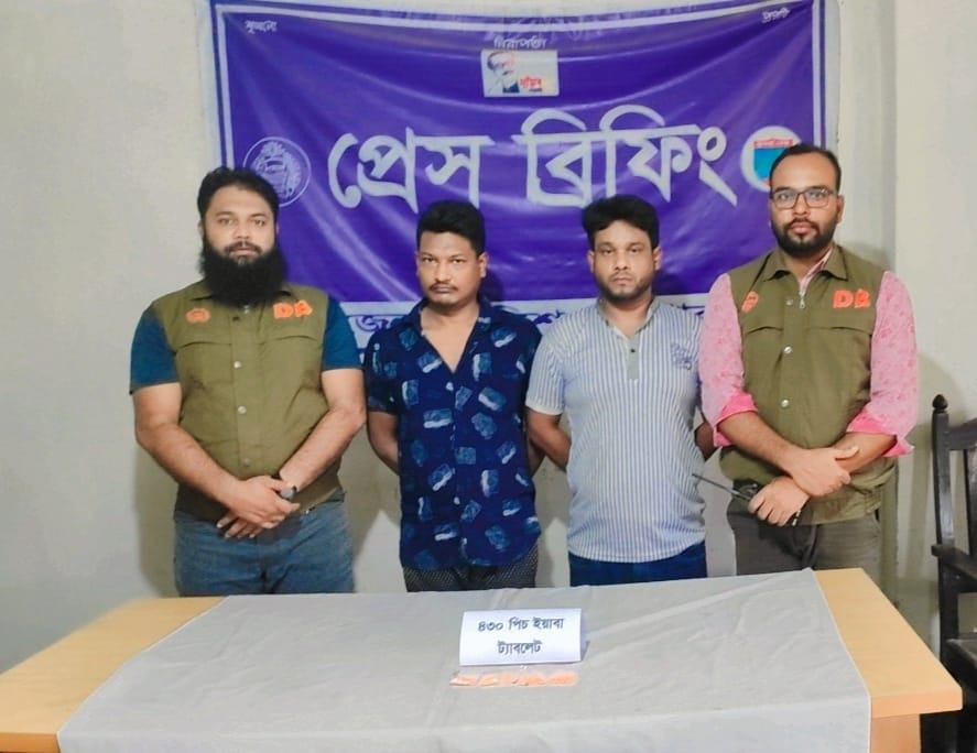 যশোর অফিস যশোর ডিবি পুলিশ ৪৩০পিস ইয়াবা ট্যাবলেটসহ দুই যুবককে আটক করেছে। এরা হলো, বাগাদুরপুর মেহগুনিতলা শেখ কামাল উদ্দিনের ছেলে শেখ রাহাত মাহমুদ (৩৭) এবং পূর্ববারান্দীপাড়ার আব্দুল গফুরের ছেলে ইমন হাসান রাকিব (৩০)।