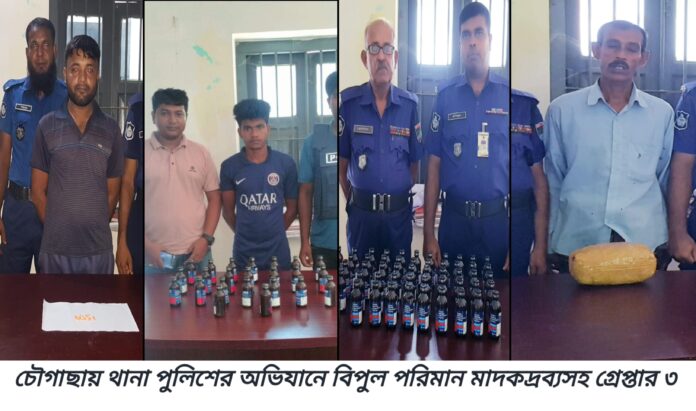 রায়হান হোসেন, চৌগাছা পৌর প্রতিনিধিঃ যশোরের চৌগাছায় পৃথক অভিযান পরিচালনা করে ৭৮বোতল ফেন্সিডিল, ১কেজি গাঁজা ও ৩০পিচ ইয়াবা ট্যাবলেট সহ ৩মাদক কারবারিকে গ্রেপ্তার করেছে থানা পুলিশ। সোমবার (৪ সেপ্টেম্বর) চৌগাছা পৌরসভা, স্বরুপদাহ ও সুখপুকুরিয়া ইউনিয়নে এ অভিযান পরিচালনা করে আসামীদের গ্রেপ্তার করা হয়। গ্রেপ্তারকৃতরা হলেন, সুখপুকুরিয়া ইউনিয়নের বল্লভপুর গ্রামের মৃত ইরাদ আলীর ছেলে নেবুর আলী (৫২), রামকৃষ্ণপুর গ্রামের ওলাদ আলীর ছেলে সজীব হোসেন (১৯) ও পৌরসভার কারিকরপাড়ার শওকত আলীর ছেলে আবু জাফর (৩৩)। থানাসুত্রে জানা যায়, সোমবার ভোরে থানার এ এস আই আরিফ হোসেন সঙ্গীয় ফোর্স সহ উপজেলার সুখপুকুরিয়া ইউনিয়নের নেবুর আলী নামের মাদক ব্যবসায়ীর বাড়ি অভিযান চালানো হয়। এসময় বল্লভপুর গ্রামে নিজ বাড়ির উঠান থেকে ১ কেজি গাঁজাসহ ভোর ৪টা ৪৫ মিনিটে তাকে গ্রেপ্তার করে থানা পুলিশ। একই ইউনিয়নের আরেকটি অভিযানে এ এস আই কামাল হোসেন সঙ্গীয় ফোর্সসহ কুলিয়া দক্ষিনপাড়ায় অভিযান চালিয়ে ভোর ৫টা ১৫মিনিটে ৫৫বোতল ফেন্সিডিল জব্দ করে পুলিশ। এসময় কুলিয়া পশ্চিমপাড়ার দেলু খার ছেলে সম্রাট খা (৩২) ও দক্ষিনপাড়ার মৃত আমানত মন্ডলের ছেলে তরিকুল ইসলাম (৫০) মাদক দ্রব্য রেখে পালিয়ে যায় বলে জানায় পুলিশ। এদিন দুপুর দেড়টার দিকে থানার এস আই শামীম হোসেন সঙ্গীয় ফোর্স সহ উপজেলার স্বরুপদাহ ইউনিয়নে অভিযান চালায় পুলিশ। এসময় ইউনিয়নের মায়ের দোয়া কাশেম ইট ভাটার সামনে থেকে ২৫ বোতল ফেন্সিডিলসহ সজিব হোসেনকে গ্রেপ্তার করা হয়। অপরদিকে একইদিন বিকালে এ এস আই জিতু আলী সঙ্গীয় ফোর্সসহ পৌর এলাকায় অভিযান চালায় পুলিশ। এসময় শহরের মৃধাপাড়া মহিলা কলেজের সামনে থেকে ৩০পিচ ইয়াবা ট্যাবলেটসহ আবু জাফরকে গ্রেপ্তার করা হয়। চৌগাছা থানার ভারপ্রাপ্ত কর্মকর্তা ইকবাল বাহার চৌধুরী বলেন, সোমবার ভোর থেকে বিকাল পর্যন্ত চারটি মাদকবিরোধী সফল অভিযানে মোট ২লক্ষ ৭৩ হাজার টাকা মুল্যের মাদকদ্রব্য জব্দ করা হয়। এ সংক্রান্তে মাদকদ্রব্য নিয়ন্ত্রণ আইনে পৃথক চারটি মামলা হয়েছে। আসামীদের আদালতের মাধ্যমে জেল হাজতে প্রেরণ করা হয়েছে।