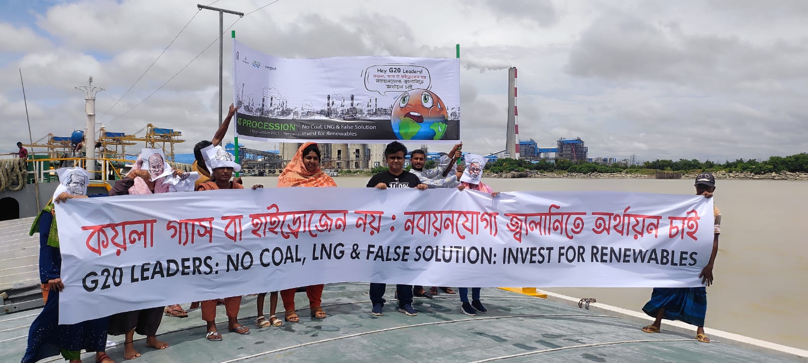 নৌ সমাবেশে বক্তারা আরো বলেন মোট বিদ্যুৎ উৎপাদন সক্ষমতার ৮২ শতাংশই গ্যাস, কয়লা ও ডিজেল ভিত্তিক এবং এর অধিকাংশই আমদানি নির্ভর। এই গ্যাস যাদের কাছ থেকে আমদানি করতে হয় তার অধিকাংশই জি-২০ ভূক্ত দেশসমুহ। তাই তাদের কাছে আমাদের দাবী গ্যাস কয়লা তেল ভিত্তিক জ্বালানিতে বিনিয়োগ না করে আমাদের জন্য সুবিধাজনক নবায়নযোগ্য জ্বালানিতে বিনিয়োগ করো। আমাদেরকে আর দরিদ্রতার দিকে ঠেলে দিও না। আমাদের দেশকে আর ডলার সংকটের দিকে ঠেলে দিও না।
