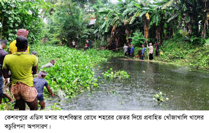 কেশবপুরে ডেঙ্গু বিস্তার রোধে নদ-নদী থেকে কচুরিপনা অপসারণ শুরু