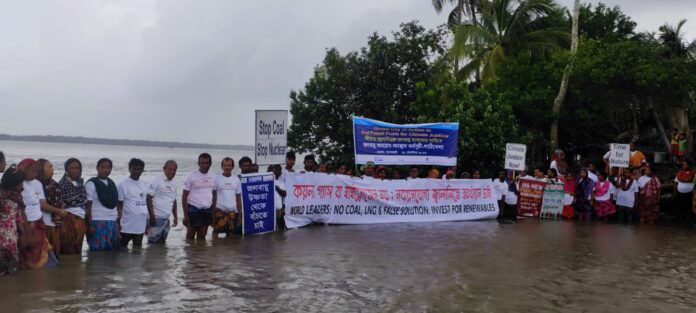মাসুদ রানা, মোংলা : কয়লা, গ্যাস, বা হাইড্রোজেন নয়; নবায়নযোগ্য জ্বালানিতে অর্থায়ন চাই। এলএনজি টার্মিনাল ও জীবাশ্ম জ্বালানি ভিত্তিক বিদ্যুৎ কেন্দ্র বন্ধ করো। সূর্য যেহেতু জ্বালানি দেয়; তাই তেল আমদানির কোন প্রয়োজন নেই। মুজিব জলবায়ু সমৃদ্ধি পরিকল্পনা অনুসারে নবায়নযোগ্য জ্বালানিতে অর্থায়ন করো। আমরা জলবায়ু উষ্ণতা থেকে বাঁচতে চাই। জলবায়ু পরিবর্তনের জন্য দায়ী দেশগুলির কাছে ঋণ নয়, আমরা ক্ষতিপূরণ চাই। ১৫ সেপ্টেম্বর শুক্রবার সকালে জ্বালানি অধিকার সপ্তাহ উপলক্ষে মোংলার চিলা বাজার এলাকার সুন্দরবন সংলগ্ন পশুর নদীতে জলবায়ু অবরোধ ও অবস্থান কর্মসুচি পালনকালে সমাবেশে বক্তারা একথা বলেন। জীবাশ্ম জ্বালানিমুক্ত জলবায়ু ন্যায্যতার দাবিতে ওয়াটারকিপার্স বাংলাদেশ, পশুর রিভার ওয়াটারকিপার ও ব্রতীর আয়োজনে এ জলবায়ু অবরোধ এবং অবস্থান কর্মসুচি পালিত হয়। শুক্রবার সকাল ১০টায় জলবায়ু অবরোধ ও অবস্থান কর্মসুচিতে সভাপতিত্ব করেন বাংলাদেশ পরিবেশ আন্দোলন (বাপা) এর কেন্দ্রিয় যুগ্ম সম্পাদক পশুর রিভার ওয়াটারকিপার মোঃ নূর আলম শেখ। জলবায়ু অবরোধ ও অবস্থান কর্মসুচিতে বক্তব্য রাখেন ওয়াটারকিপার্স বাংলাদেশ’র কমলা সরকার, বাপা নেতা গীতিকার মোল্লা আল মামুন, পশুর রিভার ওয়াটারকিপার ভলান্টিয়ার শেখ রাসেল, মেহেদী হাসান বাবু, তন্বী মন্ডল প্রমূখ। জলবায়ু অবরোধ কর্মসুচিতে বক্তারা আরো বলেন জলবায়ু সংকটের জন্য আমরা দায়ী না। অতিরিক্ত মাত্রায় জীবাশ্ম জ্বালানি ব্যবহারের ফলে জলবায়ু পরিবর্তন আজ অনিবার্য হিসেবে দেখা দিয়েছে। জীবাশ্ম জ্বালানি ক্লিন এনার্জি না। তাই জীবাশ্ম জ্বালানি নীতি পরিহার করে নবায়নযোগ্য জ্বালানি নীতি গ্রহণ করতে হবে। জলবায়ু অবরোধ কর্মসুচিতে বক্তারা আরো বলেন দেশের সকল জনগনের জন্য সুলভ, সাশ্রয়ী এবং পরিবেশবান্ধব জ্বালানি সরবরাহে সরকার প্রতিশ্রুতিবদ্ধ। পরিবেশ ও জীববৈচিত্র সংরক্ষণ এবং উন্নয়ন বাংলাদেশের সংবিধানের মূলনীতির অংশ ( ১৮ এর ’ক’ অনুচ্ছেদ )। প্যারিস চুক্তিতে স্বাক্ষরকারি দেশ হিসেবে বাংলাদেশ গ্রীণহাইজ গ্যাস নিঃসরণ হ্রাস এবং নবায়নযোগ্য জ্বালানি প্রসারে প্রতিশ্রুতিবদ্ধ। যা টেকসই উন্নয়ন অভীষ্ট ৭ ও ১৩ অর্জনের পূর্বশর্ত। নবায়নযোগ্য জ্বালানি পরিবেশগত ন্যায় বিচার। বক্তারা বিশ্ব নেতৃবৃন্দকে জীবাশ্ম জ্বালানি থেকে বিনিয়োগ প্রত্যাহার এবং কার্বন নিরসনে নবায়নযোগ্য জ্বালানিতে অর্থায়ন করার আহ্বান জানান। জলবায়ু অবরোধ ও অবস্থান কর্মসুচিতে শতাধিক জলবায়ু উদ্বাস্তু এবং ঝুঁকিপূর্ণ মানুষ অংশগ্রহণ করেন। জলবায়ু অবরোধ এবং অবস্থান কর্মসুচি ছাড়াও শুক্রবার দুপুরে মোংলার খাসেরডাঙ্গা গার্লস স্কুল মাঠে ওয়াটারকিপা