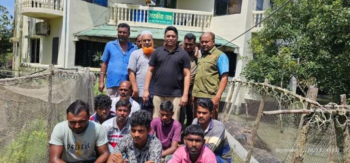 ইতোমধ্যে সাগরে ঝড় সৃষ্টি হওয়ায় বৈরী আবহাওয়ায় পতিত হয়ে তারা জীবননাশের হুমকিতে পড়ে যায়। ট্রলার দুটি ভাসতে ভাসতে গত ১৫ সেপ্টেম্বর বিকালে সুন্দরবনের মান্দারবাড়িয়া অভয়ারণ্য কেন্দ্রের কাছে এলে টহল দল তাদেরকে উদ্ধার করে। তাদের খাওয়া দাওয়ার ব্যবস্থার পর ট্রলার দুটি মেরামত করে তাদেরকে নিরাপদে বাড়ি ফেরার ব্যবস্থা করা হয়।সুন্দরবন পশ্চিম বন বিভাগ, খুলনা এর বিভাগীয় বন কর্মকর্তা ড. আবু নাসের মোহসিন হোসেন জানান, সুন্দরবন ব্যবস্থাপনার দায়িত্বে নিয়োজিত থাকা বন বিভাগ সুন্দরবন রক্ষণাবেক্ষণের পাশাপাশি বিভিন্ন সময় সাগর বা নদীতে বিপদগ্রস্ত জেলেদের উদ্ধারের মাধ্যমে মানবিক কর্মকান্ড সম্পাদন করে থাকে। তিনি আরো জানান, ইতোপূর্বেও গত ২০ আগস্ট বনবিভাগের স্মার্ট টহল টিম সুন্দরবনের হলদেবুনিয়ার রায়মঙ্গল নদী হতে ভাসমান ২৪ জন জেলেকে উদ্ধার করে নিজ বাড়িতে ফেরত যাওয়ার ব্যবস্থা করেছিলেন।গত ২১ আগস্ট পুষ্পকাঠি অভয়ারণ্য এলাকা থেকে ৬৫ জন জেলেকে নিরাপদে বাড়ি যাওয়ার ব্যবস্থা করা হয়েছিল। গত ২ আগস্ট মান্দারবাড়িয়া অভয়ারণ্য কেন্দ্র এলাকা হতে ৭ জন জেলেকে উদ্ধার করে নিরাপদে বাড়ি ফেরার ব্যবস্থা করা হয়েছিল।