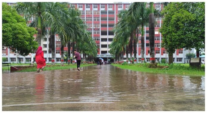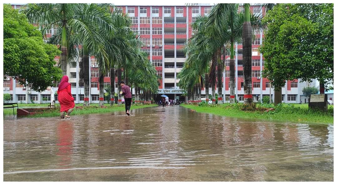 রবিবার (২৪ সেপ্টেম্বর) দেখা যায়, একাডেমিক ভবনগুলোর সামনে, ক্যাম্পাসের ভিতরে সকল রাস্তা, ক্যাম্পাসের বাস্কেটবল গ্রাউন্ড, দুটি একাডেমিক ভবনের বিভিন্ন ফ্লোরে ও সিঁড়িতে পানি জমে আছে। ক্লাস পরীক্ষা চলমান থাকায় বৃষ্টির মধ্যে জলাবদ্ধতার জায়গায় কাপড় একটু উঁচিয়ে জুতা হাতে নিয়ে একাডেমিক ভবনে প্রবেশ করেছে শিক্ষার্থীরা, সিড়িতে উঠার সময় পিছলে পড়ার সম্ভাবনাও রয়েছে। একদিকে বৃষ্টি অন্যদিকে জলাবদ্ধতা এ দুই মিলিয়ে ভোগান্তিতে পড়েন শিক্ষক, শিক্ষার্থী, কর্মকর্তা ও কর্মচারীরা।