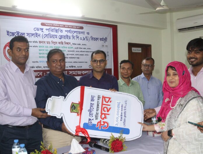 যশোরের খড়কী এলাকায় অবস্থিত স্বেচ্ছাসেবী সংগঠন আইডয়া সমাজকল্যাণ সংস্থার উদ্যোগে ১লা অক্টোবর, ২০২৩; যশোর সিভিল সার্জন অফিসে অনুষ্ঠিত হয় ডেঙ্গু রোগীদের জন্য স্যালাইন বিতরণ কর্মসূচি। আইডিয়া সমাজকল্যাণ সংস্থার সাধারণ সম্পাদক জান্নাতুল ফেরদৌস এর সভাপতিত্বে ‘ডেঙ্গু পরিস্থিতি পর্যালোচনা ও ইঞ্জেক্টেবল স্যালাইন (সোডিয়াম ক্লোরাইড বি পি ০.৯%) বিতরণ কর্মসূচি’ শিরোনামে আয়োজিত এই অনুষ্ঠানের প্রধান অতিথি হিসেবে উপস্থিত ছিলেন জনাব ডা. বিপ্লব কান্তি বিশ্বাস (সিভিল সার্জন, যশোর)। যশোরের ডেঙ্গু পরিস্থিতির ভয়াবহতার কথা বিবেচনায় নিয়ে ইঞ্জেক্টেবল স্যালাইন এর সংকট হেতু চিকিৎসাধীন ডেঙ্গু রোগীদের পাশে দাঁড়াতে চায় সংগঠনটি, পাশাপাশি জনসচেতনতা সৃষ্টির উদ্দেশ্যে এই আয়োজন। অনুষ্ঠানে আইডিয়া সমাজকল্যাণ সংস্থার উদ্যোগে ডেঙ্গু রোগীদের জন্য ১,০০,০০০ মিলিলিটার ‘ইঞ্জেক্টেবল এন এস স্যালাইন’ উপহার স্বরূপ যথাযথ কতৃপক্ষের নিকট সম্পূর্ণ বিনামূল্যে প্রদান করে প্রতিষ্ঠান টি।