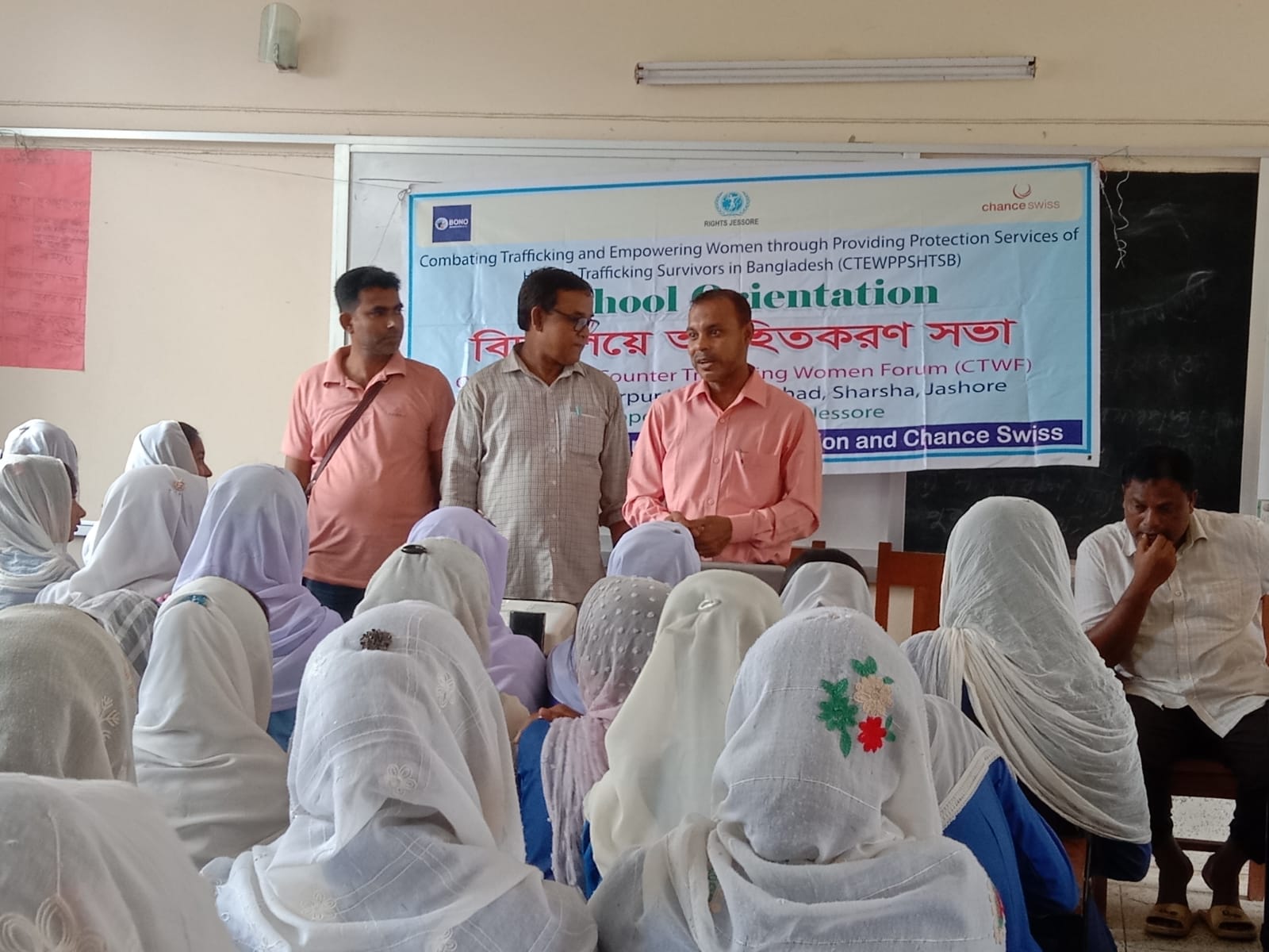 যশোর অফিস : মানবাধিকার সংগঠন ৱাইটস যশোর’ৱ আয়োজনে ও দাতা সংস্থা বনো ও চান্স সুইস, জার্মানি এৱ অর্থায়নে পরিচালিত “কমব্যাটিং ট্রাফিকিং এন্ড এম পাওয়ারিং ওমেন থ্রো প্রোভাইডিং প্রটেকশন সার্ভিসেস অব হিউম্যান ট্রাফিকিং সারভাইভারস ইন সাউথওয়েস্ট রিজিয়ন অব বাংলাদেশ” শীর্ষক প্রকল্পের অধীনে চলমান কর্মসূচির অংশ হিসেবে যশোরের শার্শার বাহাদুরপুর ইউনিয়ন অধীন গতকাল সকালে ধান্যখোলা মাধ্যমিক বিদ্যালয়েৱ বিভিন্ন শ্রেণী ছাত্র-ছাত্রীদের নিয়ে মানব পাচার প্রতিরোধ বিষয়ে জনসচেতনতা সৃষ্টির লক্ষ্যে এক অবহিতকরণ সভা অনুষ্ঠিত হয়। বিদ্যালয়ের ভারপ্রাপ্ত প্রধান শিক্ষক মাসুদ পারভেজ কর্মসূচিৱ উদ্বোধন ঘোষণা করেন। এরপর প্রকল্পের কাউন্সেলর মো: বজলুৱ রহমান স্বাগত বক্তব্যসহ সংক্ষিপ্ত আকারে প্রকল্পের লক্ষ্য উদ্দেশ্য বর্ণনা করেন। এরপর মূল কর্মসূচি মানব পাচারের উপরে ভিডিও শো প্রদর্শনসহ পরিচালনা করেন প্রকল্পের তথ্য অনুসন্ধান কর্মকর্তা তৌফিকুজ্জামান। ভিডিও শো প্রদর্শনের মাধ্যমে কোমলমতি শিশুরা মানব পাচার বিষয়ে কি কি জানতে পেরেছে সে বিষয়ে কুইজ প্রতিযোগিতা অনুষ্ঠিত হয়। এ পর্বে প্রধান অতিথি হিসেবে উপস্থিত ছিলেন বিদ্যালয়েৱ সভাপতি বাহাদুরপুর ইউপি চেয়ারম্যান চেয়ারম্যান মোঃ মফিজুর রহমান। কুইজ প্রতিযোগিতায় পাঁচ জন ছাত্র-ছাত্রীকে বিজয়ী ঘোষণা করা হয়। এৱপর চেয়ারম্যান বিজয়ীদের মাঝে পুরস্কার তুলে দেন। সমাপনী বক্তব্যে তিনি মানব পাচারের ভয়াবহতা সম্পর্কে ভিডিওসহ থেকে লব্ধজ্ঞান সকলকে কাজে লাগানোর তাগিদ দেন। তিনি আৱো বলেন, মানব পাচার একটি জঘন্যতম কাজ এটাকে সমাজ থেকে বিনাশ রাইটস যশোর’র সাথে সকলকে একযোগে কাজ করতে হবে। এ ধরনের জঘন্যতম কাজ সমাজ থেকে থেকে উৎখাতের লক্ষ্যে রাইটস যশোর তৃণমূল পর্যায়ে সচেতনতামূলক যেসব কর্মসূচি বাস্তবায়ন করে যাচ্ছে সেটা আসলেই প্রশংসার দাবি ৱাখে। তিনি ছাত্র-ছাত্রীদের বাল্য বিবাহ ও মানব পাচার পরস্পর সম্পৃক্ত তাই এ বিষয়ে তিনি সকলকে সতর্ক থাকার আহবান জানান। কর্মসূচিতে শতাধিক ছাত্রছাত্রী উপস্থিত ছিল। অপরদিকে একইদিন বিকেলে ইউনিয়নের মানকিয়া গ্রামের আলমগীর হোসেনেৱ বাড়িতে ৱাইটস যশোর’র গঠনকৃত ইউনিয়ন সিটি ডব্লিউ সদস্যর আয়োজনে মানব পাচার ও বাল্যবিবাহ প্রতিরোধে এক উঠোন বৈঠক অনুষ্ঠিত হয় ।এতে প্রকল্পের কাউন্সেলর মো: বজলুৱ রহমান ও তথ্য অনুসন্ধান কর্মকর্তা মোঃ তৌফিকুজ্জামান উপস্থিত থেকে কমিউনিটি থেকে আসা বিভিন্ন শ্রেণী পেশার নারীদেরকে মানব পাচারের ভয়াবহতা বাল্যবিবাহের কুফল সম্পর্কে বিস্তারিত আলোচনা করেন। আলোচনাৱ এক পর্যায়ে দালালের খপ্পরে পড়ে বিদেশ থেকে প্রতারিত হয়ে ফিৱে আসা স্থানীয় জনৈক যুবক তার জীবনে ঘ