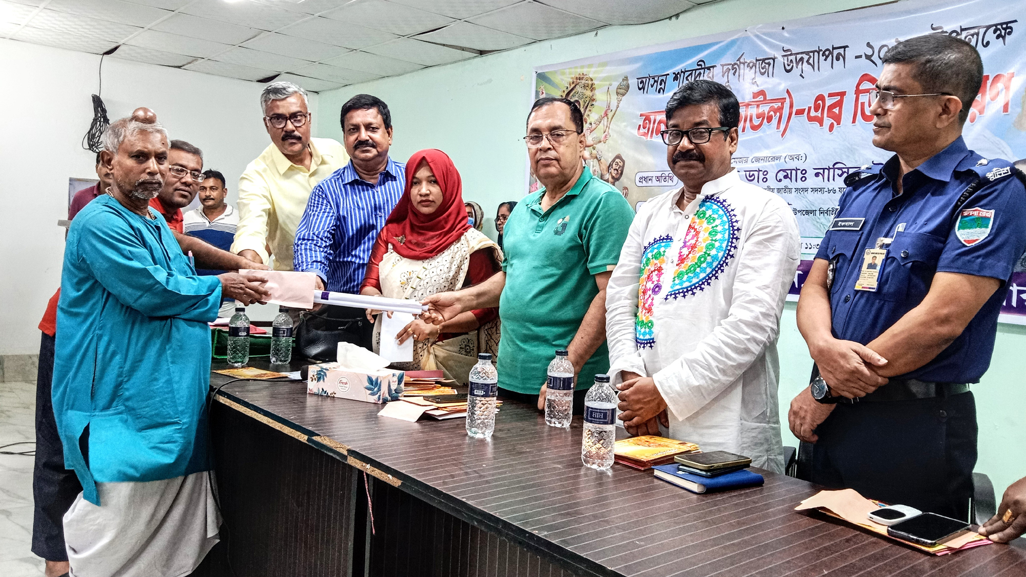 চৌগাছা পৌর প্রতিনিধিঃযশোরের চৌগাছায় আসন্ন শারদীয় দূর্গাপূজা উদযাপন উপলক্ষে ত্রান কার্য (চাউল)-এর ডিও বিতরন করেছেন স্থানীয় সাংসদ বীর মুক্তিযোদ্ধা মেজর জেনারেল (অবঃ) অধ্যাপক ডাঃ নাসির উদ্দীন। রবিবার (১৫ অক্টোবর) বেলা সাড়ে ১১টায় উপজেলা পরিষদ মিলনায়তনে আয়োজিত এক অনুষ্ঠানে প্রধান অতিথি হিসেবে তিনি এ ডিও বিতরণ করেন।অনুষ্ঠানে সভাপতিত্ব করেন উপজেলা নির্বাহী কর্মকর্তা ইরুফা সুলতানা।উপজেলা পূজা উদযাপন পরিষদের সাধারণ সম্পাদক ও ভাইস চেয়ারম্যান দেবাশীষ মিশ্র জয়ের সঞ্চালনায় বিশেষ অতিথির বক্তৃতা করেন যশোর জেলা পূজা উদযাপন পরিষদের সভাপতি দীপঙ্কর দাস রতন, উপজেলা সহকারী কমিশনার (ভূমি) গুঞ্জন বিশ্বাস ও চৌগাছা থানার ভারপ্রাপ্ত কর্মকর্তা ইকবাল বাহার চৌধুরী।এসময় উপস্থিত ছিলেন জেলা পূজা উদযাপন পরিষদের সহ-সভাপতি জয়ন্ত বিশ্বাস, উপজেলা পূজা উদযাপন পরিষদের সভাপতি অধ্যক্ষ বলাই চন্দ্র পাল, সুখপুকুরিয়া ইউপি চেয়ারম্যান বীর মুক্তিযোদ্ধা হবিবর রহমান, উপজেলা আনসার ও ভিডিবি কর্মকর্তা মমতাজ পারভীন, পৌর পূজা উদযাপন পরিষদের সভাপতি অশোক হালদার, সাধারণ সম্পাদক অভিজিৎ কুমার রায়, উপজেলা পূজা উদযাপন পরিষদের আইন বিষয়ক সম্পাদক সাংবাদিক শ্যামল দত্ত, পাশাপোল পূজা উদযাপন পরিষদের সভাপতি মহাদেব রায় প্রমুখ।আলোচনা সভা শেষে ত্রাণের চাউলের ডিও বিতরণ করেন অনুষ্ঠানের প্রধান অতিথি এমপি নাসির উদ্দীন। এসময় উপজেলার ৪৯ টি দূর্গাপূজা মন্ডপে চাউলের ডিও বিতরণ করেন তিনি। সরকারি অনুদান হিসেবে প্রতিটি পূজা মন্ডপে ৫০০ কেজি করে চাউলের ডিও বিতরণ করা হয়।