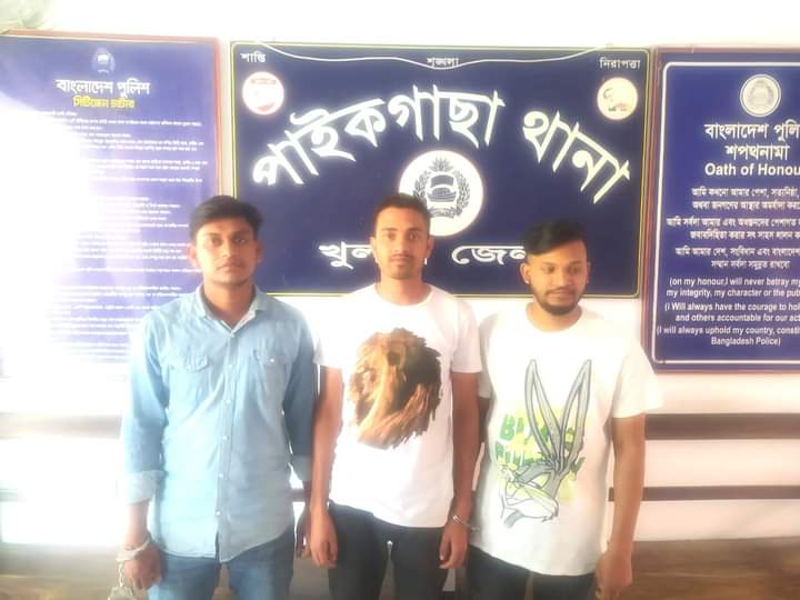 মামলার বাদী উপ-পুলিশ পরিদর্শক (এস আই) অমিত দেব নাথ জানান, গোপন সংবাদে বৃহস্পতিবার রাত দুইটার দিকে অভিযান চালিয়ে পৌর সদরের শিবসা ব্রিজের উপর থেকে তাদেরকে আটক করা হয়। তারা সোলাদানা ইউনিয়নে মাদ বিক্রয়ের জন্য মোটর সাইকেল যোগে যাচ্ছিল। এ সময় তাদেরকে গতি রোধ করলে দৌড়ে পালাতে যায়। এ সময় ব্রিজের শেষ প্রান্তে তাদেরকে আটক করা হয়। আটক ব্যক্তিরা হলেন, উপজেলার সোলাদানা ইউনিয়নের টেংরামারী গ্রামের বঙ্কিম ঢালীর ছেলে প্রনয় ঢালী(২৫), গড়ুই খালী ইউনিয়নের হাতিয়া ডাঙ্গা গ্রামের শংকর সানার ছেলে অভিজিৎ সানা(২৪), ও ডুমুরিয়া উপজেলার চ্যাংমারী গ্রামের সুজিৎ মন্ডলের ছেলে রনি মন্ডল (২১)কে আটক করা হয়। তাদের স্বীকারোক্তিতে মোটর সাইকেলে থাকা ব্যাগে রাখা HIGHLAND QUEEN, BLENDED SCOTCH WHISKY, 100 CL (১ লিটার) ও দুই বোতল দেশি মদ বোতলের গায়ে লেবেলের উপর ইংরেজিতে CAREWS 750 ML, Tasrina VODKA,