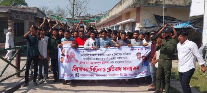মঙ্গলবার ৩১ অক্টোবর সকাল সাড়ে ১১টায় শত শত কলেজ ছাত্রলীগ কর্মীর উপস্থিতিতে বিক্ষোভ মিছিলটি শ্যামনগর সরকারী মহাসিন কলেজ ক্যাম্পাস হতে শুরু হয়ে প্রধান প্রধান সড়ক প্রদক্ষিণ করে।