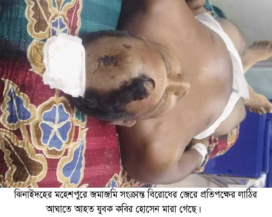 মহেশপুর (ঝিনাইদহ)অফিস : ঝিনাইদহের মহেশপুরে জমাজমি সংক্রান্ত বিরোধের জেরে প্রতিপক্ষের লাঠির আঘাতে আহত যুবক কবির হোসেন মারা গেছে। শুক্রবার সকালে ঢাকা মেডেকেল কলেজ হাসপাতালে চিকিৎসাধীন অবস্থায় তার মৃত্যু হয়। সে উপজেলার মান্দারবাড়ীয়া ইউনিয়নের মির্জাপুর গ্রামের কওছার আলীর ছেলে।