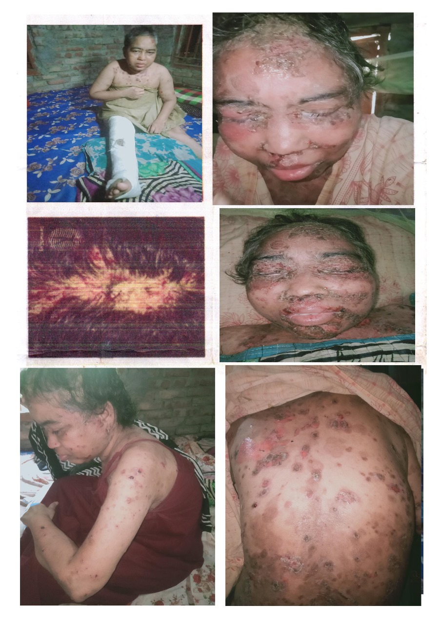 সরেজমিনে অসুস্থ শরিফা খাতুনের বাসায় যেয়ে দেখা যায়, তার শরীরের প্রায় ৮০ শতাংশ পচেঁ গিয়ে ভয়ার্ত রূপ নিয়ে দুর্গন্ধ ছড়াচ্ছে। অর্থাভাবে চিকিৎসা না পাওয়াতে ক্রমশ তিনি মৃত্যুর দিকে ধাবিত হচ্ছেন। তারপরেও দুই চোখে তার বাঁচার করুন আকুতি।