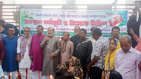 তারা অবরোধের নামে পুলিশ হত্যা করা, বাসে অগ্নি সংযোগ করে সাধারণ মানুষ পুড়িয়ে মারা, দেশের সম্পদ নষ্ট করছে। দেশের সাধারণ জনগণ তাদের এই অবৈধ অবরোধ প্রত্যাখান করেছে। প্রধান অতিথি আরো বলেন আগামী দ্বাদশ জাতীয় সংসদ নির্বাচন দেশের সাধারণ মানুষের জন্য অত্যন্ত গুরুত্বপূর্ণ। জাতীয় নির্বাচন বানচাল করার জন্য বিএনপি- জামায়াতের সন্ত্রাসীরা দেশে-বিদেশে বিভিন্ন ভাবে ষড়যন্ত্র করছে। তাদের ওই সড়যন্ত্র আমাদের ঐক্যবদ্ধ হয়ে রুখে দিতে হবে। আগামী ২০২৪ সালের নির্বাচনে জননেত্রী শেখ হাসিনাকে পুনরায় প্রধানমন্ত্রী হিসেবে ক্ষমতায় বসাতে হবে। নির্বাচন শেষ না হওয়া পর্যন্ত রাজপথে আমাদের অবস্থান কর্মসূচি অব্যহত থাকবে। কোন অপতৎপরতা নির্বাচনকে বাঁধাগ্রস্থ করতে পারবেনা। কেউ বাঁধা দিতে আসলে বাংলাদেশ আওয়ামীলীগ দাত ভাঙা জবাব দেবে।