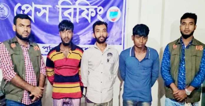 নিজস্ব প্রতিবেদক, যশোর : যশোরে ছিনতাইয়ের ঘটনায় তিনজনকে গ্রেফতার করেছে পুলিশ। গ্রেফতারকৃতদের কাছ থেকে ছিনতাইকৃত ইজিবাইক উদ্ধার করা হয়েছে। গ্রেফতারকৃতরা হলেন, ভরসা, শামীম হোসেন ও আকাশ। বৃহস্পতিবার (৯ নভেম্বর) দুপুরে জেলা পুলিশ এক প্রেস বিজ্ঞপ্তিতে এ তথ্য জানিয়েছে।পুলিশ জানায়, গত ৭ নভেম্বর সন্ধ্যা সাড়ে সাতটার দিকে সদরের ছাতিয়ানতলার চুড়ামনকাঠি হতে বাদিয়াটোলাগামী পাকা রাস্তার পাশে বড়বিলকান্দা মাঠে ইমরান হোসেন নামে এক ইজিবাইক চালককে গলায় চাকু ঠেকিয়ে রক্তাক্ত জখম ও হাত-পা বেঁধে ইজিবাইক ছিনতাই করে নিয়ে যায় তিনজন ছিনতাইকারী। পরে স্থানীয় লোকজন ইমরানকে উদ্ধার করে যশোর হাসপাতালে ভর্তি করে। এ ঘটনায় ইমরান বাদী হয়ে কোতোয়ালী থানায় একটি মামলা দায়ের করেন। মামলার তদন্তের ধারাবাহিকতায় ডিবি পুলিশের একটি টিম অভিযান চালিয়ে কালীগঞ্জ উপজেলার সাতগাছিয়া এলাকা থেকে ছিনতাইকারী চক্রের তিন সদস্যকে গ্রেফতার করে।গ্রেফতারকৃতদের কাছ থেকে ছিনতাইকৃত ইজিবাইক, চাকু, রক্তাক্ত সেন্ডেল, ছেড়া গামছা ও কাপড়ের অংশ বিশেষ উদ্ধার করা হয়েছে।