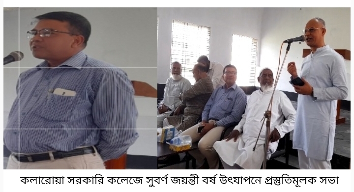এম, এ সাজেদ, কলারোয়া ( সাতক্ষীরা) প্রতিনিধি: কলারোয়া সরকারি কলেজে সুবর্ণ জয়ন্তী বর্ষ উৎযাপনে এক প্রস্তুতিমূলক সভা অনুষ্ঠিত হয়েছে। কলেজের প্রাক্তন ছাত্র-ছাত্রীদের সমন্বয়ে শুক্রবার(১০ নভেম্বর) সকাল সাড়ে ৯ টায় কলেজের হলরুমে প্রস্তুতি সভাটি অনুষ্ঠিত হয়। সভায় ঐতিহ্যবাহী কলারোয়া কলেজটি ১৯৬৯ সালে প্রতিষ্ঠার পর আজ ৫০ বছর অতিক্রম করায় সর্বসম্মতিক্রমে আগামী ১৩ এপ্রিল কলেজ প্রাঙ্গনে জাঁকজমকপূর্ণভাবে সুবর্ণ জয়ন্তী বর্ষ উৎযাপনের সিদ্ধান্ত গ্রহন করা হয়। সভায় সরকারি কলেজের অধ্যক্ষ এইচ,এম আনোয়ারুজ্জামনের সভাপতিত্বে বক্তব্য রাখেন ও উপস্থিত ছিলেন, কলেজের অবসরপ্রাপ্ত অধ্যাপক নজরুল ইসলাম, অধ্যাপক আব্দুর রাজ্জাক, অধ্যাপক আব্দুল মজিদ, অধ্যাপক আবু বক্কর ছিদ্দিক, প্রাক্তন ছাত্র ব্যাংক কর্মকর্তা কাজী আসাদুজ্জামান আসাদ, সচিবালয় কর্মকর্তা ড.মনিরুজ্জামান,উপজেলা আ’লীগ সভাপতি ফিরোজ আহম্মেদ স্বপন, উপজেলা পরিষদ চেয়ারম্যান আমিনুল ইসলাম লাল্টু, এ্যাড: ইয়ারুল ইসলাম, ইউপি চেয়ারম্যান স,ম মোরশেদ আলী, অধ্যাপক শশী ভূষন পাল, শিক্ষাবিদ রেজাউল ইসলাম( বিশ্ব:বি: রেজিস্ট্রার), ইউপি চেয়ারম্যান সাংবাদিক সহকারী অধ্যাপক এমএ কালাম, অবসরপ্রাপ্ত প্রধান শিক্ষক আব্দুর রউফ,এ্যাড: শেখ কামাল রেজা, অবসরপ্রাপ্ত পুলিশ কর্মকর্তা হুমায়ুন কবির, বাংলাদেশ ব্যাংক কর্মকর্তা আব্দুল হাকিম, কেন্দ্রীয় এনজিও কর্মকর্তা আরএম ফরহাদ, শিক্ষক ও সাংবাদিক দীপক শেঠ, ব্যাংকার জিএম ফৌজী, প্রধান শিক্ষক আমানুল্যাহ আমান, উপাধ্যক্ষ রেজাউল ইসলাম,প্রধান শিক্ষক বদরুজ্জামান বিপ্লব, ব্যবসায়ী বাবু খান, জেলা পরিষদ সদস্য আলহাজ্ব শেখ আমজাদ হোসেন, আ’লীগ নেতা রবিউল আলম মল্লিক রবি, ব্যাংকার আসাদুজ্জামান আসাদ, শাহাজাহান কবির, আ’লীগ সাধারন সম্পাদক আলিমুর রহমান, সাংবাদিক আজাদুর রহমান খান চৌধুরী পলাশ, সাংবাদিক শেখ জুলফিকারুজ্জামান জিল্লু, আজাহারুল ইসলাম, ব্যবসায়ী আ’লীগ নেতা জিএম ফাত্তাহ,, ফারুক হোসেন, প্রধান শিক্ষক মুজিবর রহমান, সহকারী অধ্যাপক ফারুক হোসেন, প্রভাষক আবুল বাশার, প্রভাষক মামুন হোসেন, সহকারী অধ্যাপক ইউনুচ আলী, এ্যাড: আব্দুল্যাহেল হাবিব, সহকারী অধ্যাপক মন্ময় মনির, মাস্টার শেখ শাহাজাহান আলী শাহীন, ডাক্তার হাবিবুর রহমান, মাস্টার শফিকুল ইসলাম, মাস্টার আরিফুজ্জামান কাকন, মাস্টার আব্দুল ওহাব মামুন, মাস্টার সিরাজুল ইসলাম, সাংবাদিক আরিফুল হক চৌধুরী, মোর্তজা, প্রাক্তন ছাত্রী সালমা আক্তার কনা সহ বিভিন্ন পেশায় নিয়োজিত শতাধিক প্রাক্তন ছাত্র-ছাত্রী ও সাংবাদিকবৃন্দ উপস্থিত ছিলেন। সভাটি পরিচালনা করেন ব্যাংক কর্মকর্তা কাজী রাশেদ জামিল মিলন ও মাস্টার শেখ শাহাজাহান আলী শাহীন। সভা শেষে সকলের ম