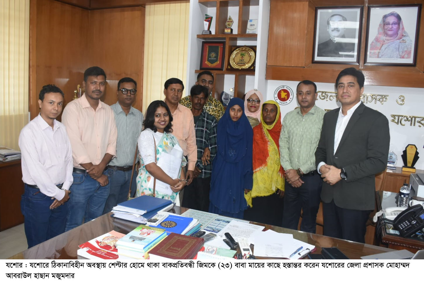 স্টাফ রিপোর্টার : যশোরে ঠিকানাবিহীন অবস্থায় শেল্টার হোমে থাকা সেই তিন নারীর মধ্যে বাকপ্রতিবন্ধী জিমকে (২৩) বাবা মায়ের কাছে হস্তান্তর করা হয়েছে। জিম পাবনার ঈশ্বরদী উপজেলার চর ঘড়ঘড়ি গ্রামের বাবু পরামানিকের মেয়ে। অনলাইন ও পত্রপত্রিকায় সংবাদ প্রকাশের পর তার ছবি দেখে পরিবারের সদস্য জিমকে শনাক্ত করেন। রোববার সকালে যশোরের জেলা প্রশাসক মোহাম্মদ আবরাউল হাছান মজুমদার জিমকে তার বাবা মায়ের কাছে হস্তান্তর করেন। জিমসহ তিন ‘ঠিকানাবিহীন’ নারীকে নিয়ে বিভিন্ন পত্র-পত্রিকায় সংবাদ প্রকাশিত হয়। এরপর বিভিন্ন গণমাধ্যমে সংবাদটি প্রকাশিত হলে নজরে আসে পাবনার দীপ্ত টিভির প্রতিনিধি শামসুল আলমের। তিনি জিমের মায়ের ফুফাতো ভাই। তিনি ওই তিন নারীর ছবি দেখে জিমকে শনাক্ত করেন। এরপর শামসুল আলম জিমের বাবা বাবু পরামানিক ও মা তহমিনাকে নিয়ে শনিবার সন্ধ্যায় যশোরে আসেন। রোববার সকালে যশোরের কালেক্টরেট কার্যালয়ে জেলা প্রশাসক জেলা প্রশাসক মোহাম্মদ আবরাউল হাছান মজুমদার জিমকে তার বাবা মায়ের কাছে হস্তান্তর করেন। এ সময় সেখানে আবেগঘন পরিবেশের সৃষ্টি হয়। জিমের বাবা বাবু পরামানিক ও মা তহমিনা জানান, প্রায় দেড় মাস আগে সন্ধ্যার দিকে প্রতিবেশী চাচার বাড়িতে টিভি দেখতে গিয়ে জিম নিখোঁজ হয়। এরপর এলাকায় অনেক খোঁজাখুঁজি করেছেন। ওঝা, কবিরাজ বাড়ি গিয়েছেন। কিন্তু কোনো সন্ধান পাননি। দেড় মাস পর মেয়েকে ফিরে পেয়ে তারা খুবই খুশি। জাস্টিস অ্যান্ড কেয়ার যশোরের প্রোগ্রাম অফিসার রিফাত রহমান রাখী জানান, গত ২৩ সেপ্টেম্বর’২৩ ভবঘুরে অবস্থায় বাকপ্রতিবন্ধী তরুণী জিমকে বেনাপোল থানা পুলিশ উদ্ধার করে। ওইদিনই পুলিশের কাছ থেকে জাস্টিস অ্যান্ড কেয়ার তাকে গ্রহণ করে যশোরে ঢাকা আহছানিয়া মিশনের শেল্টার হোমে রাখে। এরপর পারিবারিক একত্রীকরণের জন্য স্বজনদের সন্ধান করেন। কিন্তু ঠিকানা উদ্ধার না হওয়ায় তারা বিষয়টি জেলা প্রশাসনকে জানান। জাস্টিস অ্যান্ড কেয়ারের আবেদনের প্রেক্ষিতে জেলা প্রতিবন্ধী বিষয়ক কর্মকর্তা মুনা আফরিণ জিম’র ঘটনা তদন্ত করে প্রতিবেদন দাখিল করেন। জেলা প্রশাসক বরবার প্রতিবেদনে তিনি উল্লেখ করেন, স্পিচ অ্যান্ড ল্যাঙ্গুয়েজ থেরাপি ও ইশারা ভাষার মাধ্যমে আধো-আধো বোলে ২৩ বছরের বাকপ্রতিবন্ধী তরুণী জানিয়েছেন, তার নাম মীম অথবা জীম। তিনি অবিবাহিত। তারা চার ভাইবোন। তিনি বড়। বাবার নাম বাবু ও মায়ের নাম রুবিনা। কিন্তু ঠিকানা জানাতে পারেননি। জেলা প্রতিবন্ধী বিষয়ক কর্মকর্তা মুনা আফরিণ জানান, জাস্টিস অ্যান্ড কেয়ার জিমের স্বজনদের খুঁজে বের করার চেষ্টা করে। পুলিশ ব্যুরো অব ইনভেস্টিগেশন-পিবিআই যশোর অফিসেরও সহযোগিতা গ্রহণ করা হয়। কিন্তু পরিচয় উদ্ঘাটন 