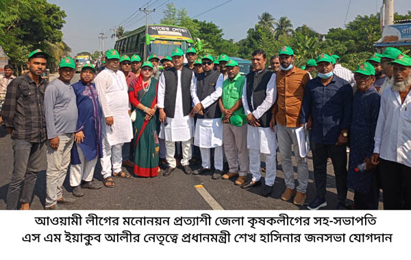 প্রধানমন্ত্রী শেখ হাসিনার জনসভায় যশোর-০৫ (মণিরামপুর) আসনের আওয়ামী লীগের মনোনয়ন প্রত্যাশী কেন্দ্রীয় ধর্ম বিষয়ক উপ-কমিটির সদস্য ও জেলা কৃষকলীগের সহ-সভাপতি এস এম ইয়াকুব আলীর উদ্যােগে প্রায় দশ হাজার নেতা-কর্মী নিয়ে সমাবেশে যোগ দেন।