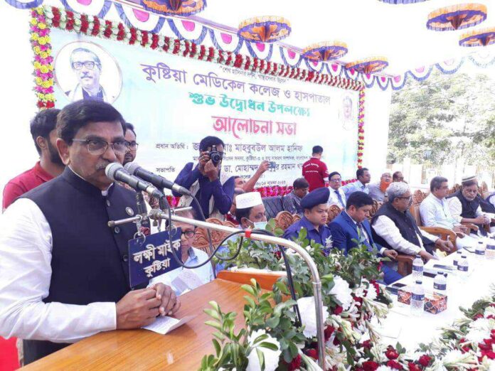 নিজস্ব প্রতিবেদক কুষ্টিয়াঃ আওয়ামী লীগের যুগ্ম সাধারণ সম্পাদক মাহবুব-উল আলম হানিফ এমপি বলেছেন, নির্বাচন কোন একটা রাজনৈতিক দলের জন্য থেমে থাকবে না। যে সমস্ত দলের নির্বাচন করার সক্ষমতা আছে তারা নির্বাচন করবে। যদি কোনো দল নির্বাচনে না আসে সেটা তাদের গণতান্ত্রিক অধিকার, তবে নির্বাচন যথাসময়েই হবে। এই নির্বাচন বানচাল ও বাধাগ্রস্ত করার জন্য বিএনপি ও তার পক্ষে কিছু দল তৎপরতা চালাচ্ছে। এতে কোন লাভ হবে না। কারণ নাশকতা মূলক কর্মকাণ্ড করে নির্বাচন বাধাগ্রস্ত বা বানচাল করা যাবে না। মঙ্গলবার (১৪ নভেম্বর) কুষ্টিয়া মেডিকেল কলেজ হাসপাতাল উদ্বোধনের আগে সাংবাদিকদের প্রশ্নের জবাবে তিনি এসব কথা বলেন। হানিফ বলেন, প্রধানমন্ত্রী শেখ হাসিনার উদ্বোধনের মাধ্যমে আজ থেকে কুষ্টিয়া মেডিকেল কলেজ হাসপাতালে কুষ্টিয়া জেলাসহ আশপাশের কয়েকটি জেলার মানুষ উন্নত চিকিৎসা সেবা নিতে পারবে। এই অঞ্চলের মানুষের দীর্ঘদিনের স্বপ্ন বাস্তবায়ন হলো। এর আগে, গণভবন থেকে ভিডিও কনফারেন্সে যুক্ত হয়ে প্রধানমন্ত্রী শেখ হাসিনা কুষ্টিয়া মেডিকেল কলেজ হাসপাতালের উদ্বোধন ঘোষণা করেন। এ সময় কুষ্টিয়া-৪ আসনের সাংসদ সেলিম আলতাফ জর্জ, জেলা পরিষদের চেয়ারম্যান সদর উদ্দিন খান, কুষ্টিয়া মেডিকেল কলেজের অধ্যক্ষ ডা. মাহবুবুর রহমান খান, পরিচালক ডা. মারুফ হাসানসহ চিকিৎসক-কর্মকর্তা ও জেলা আওয়ামী লীগের নেতাকর্মীরা উপস্থিত ছিলেন।