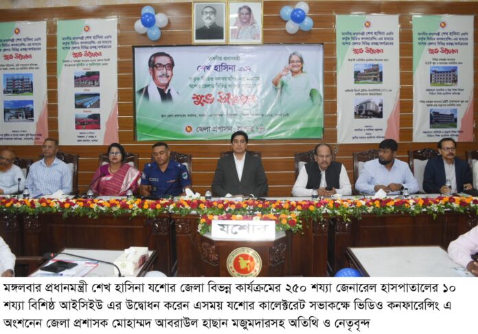 ভিডিও কনফারেন্সে উদ্বোধনের সময় যশোর কালেক্টরেট সভা কক্ষে উপস্থিত ছিলেন জেলা প্রশাসক আবরাউল হাছান মজুমদার, জেলা আওয়ামী লীগের সভাপতি বীরমুক্তিযোদ্ধা শহীদুল ইসলাম মিলন, শিক্ষা অধিদপ্তরের নির্বাহী প্রকৌশলী হাদিউজ্জামান খানসহ অন্যান্য সরকারি কর্মকর্তা-কর্মচারীবৃন্দ।
