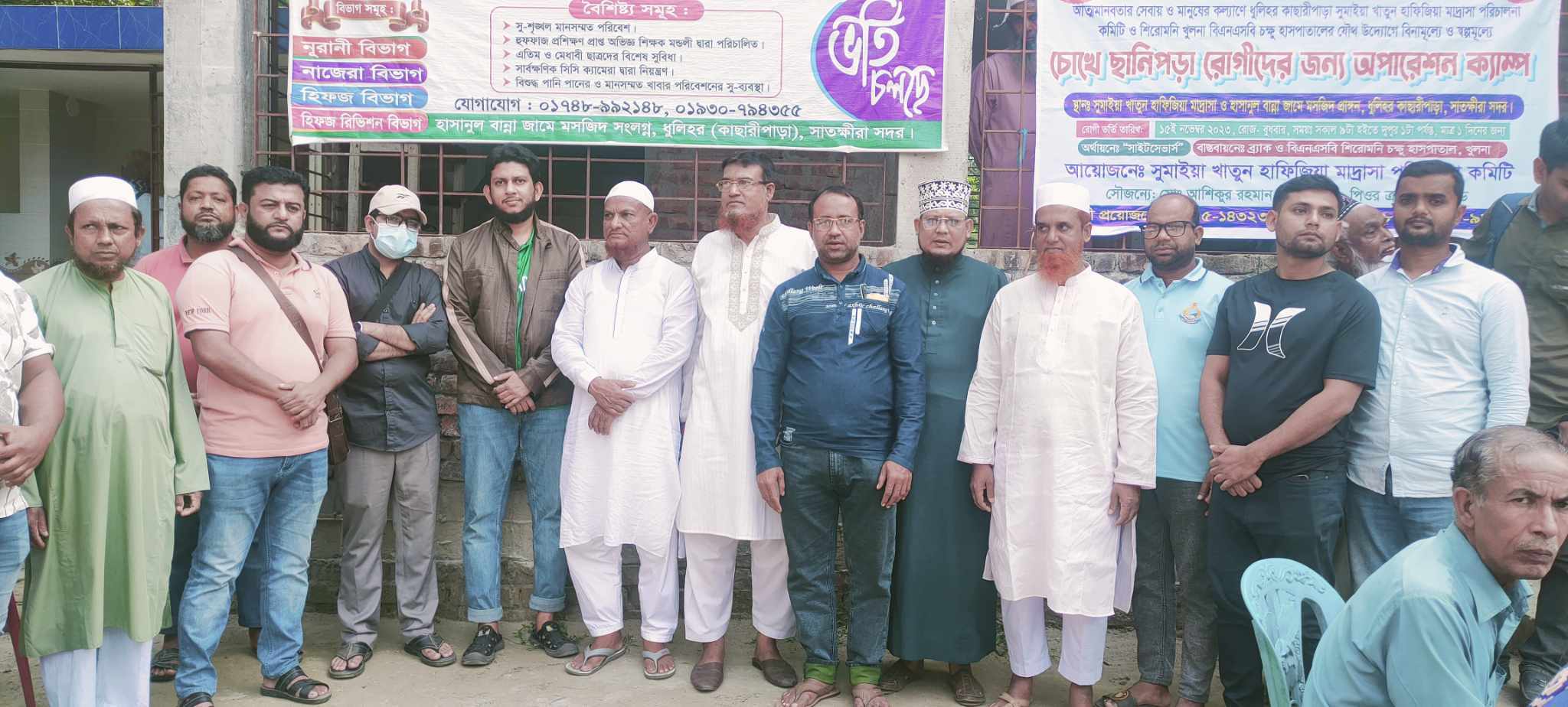 আছাদুল ইসলাম ধুলিহর সাতক্ষীরা প্রতিনিধি ঃ সাতক্ষীরা সদর উপজেলার ধুলিহর কাছারি পাড়ার সুমাইয়া খাতুন হাফিজিয়া মাদ্রাসা ও হাসানুল বান্না জামে মসজিদ প্রাঙ্গনে বুধবার ১৫নভেম্বর দিনব্যাপী বিনামূল্যে চক্ষু শিবির ক্যাম্পেইন অনুষ্ঠিত হয়। আত্ম মানবতার সেবায় ও মানুষের কল্যাণে ধুলিহর কাছারিপাড়া সুমাইয়া খাতুন হাফিজিয়া মাদ্রাসার পরিচালনা কমিটি ও শিরোমনি খুলনার বিএনএসবি চক্ষু হাসপাতালের যৌথ উদ্যোগে বিনামূল্যে ও স্বল্প মূল্যে চোখের ছানি অপারেশনসহ চোখের চিকিৎসায় অনুষ্ঠিত ক্যাম্পেইনে সভাপতিত্ব করেন অত্র প্রতিষ্ঠানের প্রতিষ্ঠাতা সভাপতি মোঃ আব্দুল ওহাব।এসময় প্রধান অতিথি হিসেবে উপস্থিত ছিলেন বিডিএফ প্রেসক্লাবের সভাপতি ও ইউপি সদস্য মোঃ আব্দুল হাকিম।অন্যান্যের মধ্যে আরও উপস্থিত ছিলেন অত্র প্রতিষ্ঠানের সেক্রেটারি মাওলানা মনিরুল ইসলাম ফারুকী, উপদেষ্টা মোঃ আব্দুল মান্নান, আবু জাফর মোঃ সালেহ, মাওলানা মনিরুল ইসলাম বেলালী,দৈনিক দৃষ্টিপাতের সাংবাদিক ম.শাহাদাত হোসেন বাবু, প্রফেসর আরিফুল ইসলাম, ম. রবিউল ইসলাম, হাবিবুর রহমান, আখতারুল ইসলাম, শামীম সানা, নুরুল ইসলাম, আতাউর রহমান রিংকু, আনারুল ইসলাম রাসেলসহ অত্র প্রতিষ্ঠানের শিক্ষক হাফেজ আবু সাঈদ বিশ্বাস,চিকিৎকদের মধ্যে উপস্থিত ছিলেন ডা: অয়ন সেন (সহকারি সার্জন বি এন এস বি শিরোমনি হাসপাতাল খুলনা), ডা: হাসিবুল ইসলাম (সহকারি সার্জন বিএনএসবি শিরোমনি হাসপাতাল খুলনা) মীর মিজানুর রহমান (রিলেশনাল শীপ অফিসার শিরোমণি হাসপাতাল খুলনা) ম. মাহবুবুর রহমান (সহকারী প্রোগ্রামার ব্রাক খুলনা) উক্ত ক্যাম্পেইনে মোট ৩৮৭ জন রুগী উপস্থিত ছিলেন তার মধ্যে পুরুষ ১৭১ জন। নারী ২১৬ জন।এর মধ্যে অপারেশনের জন্য নিয়ে যাওয়া হয় ১২১ জন রুগীকে।প্রসঙ্গত উক্ত ক্যাম্পেইনে বিভিন্ন সরকারি সুবিধাভোগী রুগীদের সম্পুর্ন ফ্রি চিকিৎসা সেবা প্রদান করা হয় এবং অন্যান্য রুগীদের নামমাত্র মুল্যে ছানি অপারেশনসহ অন্যান্য চিকিৎসা সেবা দেওয়া হয় বলে আয়োজক কমিটি সুত্রে জানা গেছে।