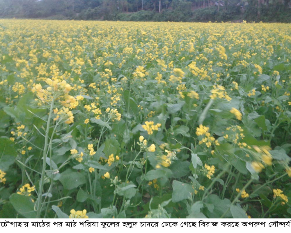 সরিষা সকলের নিকট অতি পরিচিত একটি তেলজাত শষ্য। শীত মৌসুম এলেই চাষিরা জমি প্রস্তুত করে বপন করেন বীজ। এ অঞ্চলের কৃষক সরিষার চাষ করে ওই জমিতে আবার বোরো ধানের চাষ করেন। সে কারনে আগাম বপন করা জমি এখন হলুদের চাদরে ঢেকে গেছে। এক দিকে সরিষা ফুলের সুগন্ধ অন্যদিকে মৌমাছির গুনগুন শব্দে অন্য রকম এক সৌন্দর্য বিরাজ করছে মাঠ জুড়ে। গতকাল উপজেলার বিভিন্ন মাঠ ঘুরে সৌন্দর্যের এই দৃশ্য চোখে পড়ে।