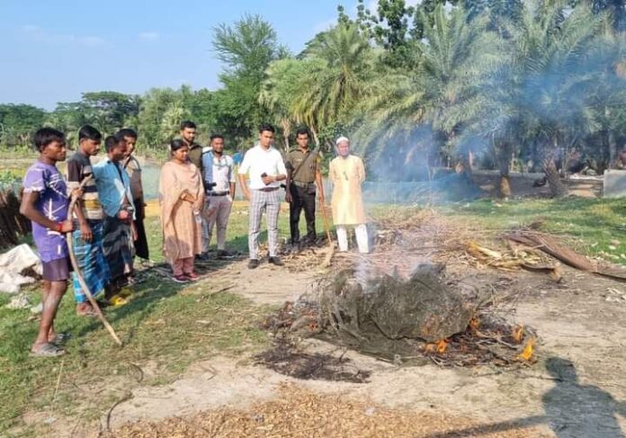 স্থানীয় জনগনকে এর ক্ষতিকর প্রভাব সম্পর্কে অবহিত করে সতর্ক করে জনসম্মুখে জাল গুলো বিনষ্ট করেন। এই নিষিদ্ধ জাল ব্যবহার করার মাধ্যমে সকল ধরনের মাছের পোনাসহ প্রাকৃতিক জলাধারের সকল প্রাণ বিনাশ হয়ে যাচ্ছে, যার কারনে এই অভিযান পরিচালনা করা। নিষিদ্ধ এই জাল ব্যবহার বন্ধ করে