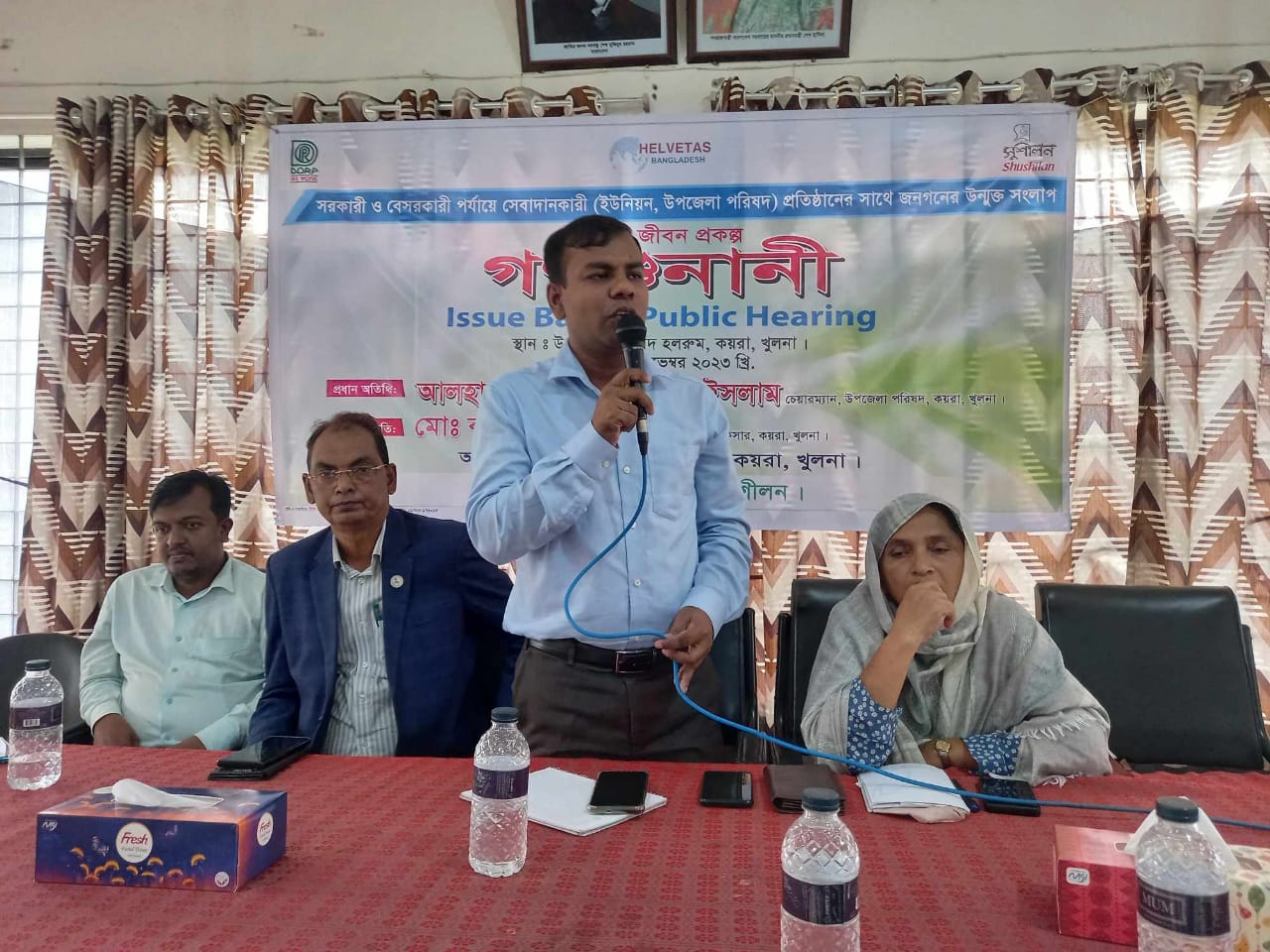 উপজেলা নির্বাহী অফিসার মোঃ কামাল হোসেনের সভাপতিত্বে গণশুনানীতে এসময় উপস্থিত ছিলেন উপজেলা মহিলা ভাইস চেয়ারম্যান নাসিমা আলম,উপজেলা প্রাণী সম্পদ অফিসার ডাঃ কাজী মোস্তাইন বিল্লাহ, উপজেলা কৃষি অফিসার মোঃ আব্দুল্লাহ আল মামুন,উপজেলা যুব উন্নয়ন কর্মকর্তা রেজাউল করিম,জনস্বাস্থ্য প্রকৌশলী ইস্তিয়াক আহমেদ।এসময় জনপ্রতিনিধি, মুক্তিযোদ্ধা, সাংবাদিক,এনজিও কর্মী, নারী নেত্রী সহ সাধারণ জনগণ উপস্হিত ছিলেন।