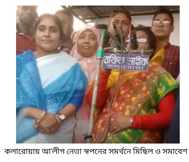 এম,এ সাজেদ, কলারোয়া( সাতক্ষীরা) প্রতিনিধি: আসন্ন দ্বাদশ সংসদ নির্বাচনে সাতক্ষীরা-১,( তালা- কলারোয়া) আসনে নৌকা প্রতীক প্রত্যাশি উপজেলা আওয়ামীলীগ সভাপতি ও সাবেক উপজেলা পরিষদ চেয়ারম্যান ফিরোজ আহম্মেদ স্বপনের সমর্থনে মিছিল ও সমাবেশ অনুষ্ঠিত হয়েছে। বৃহস্পতিবার(২৩ নভেম্বর) বিকালে নৌকার সমর্থনে ও অবরোধ বিরোধী মিছিলটি পৌর সদরের প্রধান প্রধান সড়ক প্রদক্ষিণ করে ফুটবল মাঠে সমাবেশে মিলিত হয়। উপজেলার বিভিন্ন ইউনিয়ন থেকে অসংখ্য আ’লীগ নেতা- কর্মীরা খন্ড খন্ড মিছিল সহকারে জয় বাংলা জয় বঙ্গবন্ধু ও নৌকা – নৌকা এই শ্লোগানে শ্লোগানে পৌর সদর মুখরিত হয়ে ওঠে। পরে সরকারি হাইস্কুল ফুটবল মাঠে অনুষ্ঠিত সমাবেশে বক্তব্য রাখেন ও উপস্থিত ছিলেন উপজেলা মহিলা আ’লীগ সভানেত্রী স্বপনের সহধর্মিনী সহকারী অধ্যাপক সুরাইয়া ইয়াসমিন রত্না, উপজেলা আ’লীগের যুগ্ম সাধারন সম্পাদক পৌর মেয়র মাস্টার মনিরুজ্জামান বুলবুল, যুগ্ম সাধারন সম্পাদক ইউপি চেয়ারম্যান এসএম আফজাল হোসেন হাবিল, সাংগঠনিক সম্পাদক ইউপি চেয়ারম্যান বেনজির হোসেন হেলাল, আ’লীগ নেতা ইউপি চেয়ারম্যান মাহাবুবর রহমান মফে, ইউপি চেয়ারম্যান মাহাফুজর রহমান নিসান, ইউপি চেয়ারম্যান সোহেল রানা, সাবেক ইউপি চেয়ারম্যান আসলামুল আলম আসলাম, সাবেক ইউপি চেয়ারম্যান মনিরুল ইসলাম, সাবেক অধ্যক্ষ গাজী রবিউল ইসলাম, আ’লীগ নেতা পৌর কাউন্সিলর জাহাঙ্গীর হোসেন, প্রধান শিক্ষক আজিজুর রহমান, মাস্টার হাফিজুর রহমান, মাস্টার জাহাঙ্গীর হোসেন, মফিজুল ইসলাম, মহিলা আ’লীগের সাধারন সম্পাদক রহিমা বেগম কাজল, যুবলীগ নেতা মাছুমুজ্জামান মাছুম, স্বেচ্ছা সেবকলীগ সভাপতি আসিকুর রহমান মুন্নাসহ বিভিন্ন ইউনিয়ন থেকে আগত আ’লীগ ও সহযোগী সংগঠনের নেতা- কর্মীবৃন্দ। বক্তারা, আসন্ন দ্বাদশ সংসদ নির্বাচনে তালা- কলারোয়া আসনে ত্যাগি, কর্মীবান্ধব নেতা উপজেলা আ’লীগ সভাপতি সাবেক উপজেলা পরিষদ চেয়ারম্যান ফিরোজ আহম্মেদ স্বপনকে দলীয় নৌকা প্রতীক বরাদ্দ দেয়ার জন্য কেন্দ্রীয় আ’লীগ সভানেত্রী, জননেত্রী, গনতন্ত্রের মানসকন্যা শেখ হাসিনার প্রতি আকুল আবেদন জানান। আরো বলেন,