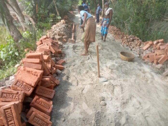 চেয়ারম্যানের বিরুদ্ধে মানহীন ইট দিয়ে রাস্তা সংস্কারের অভিযোগ