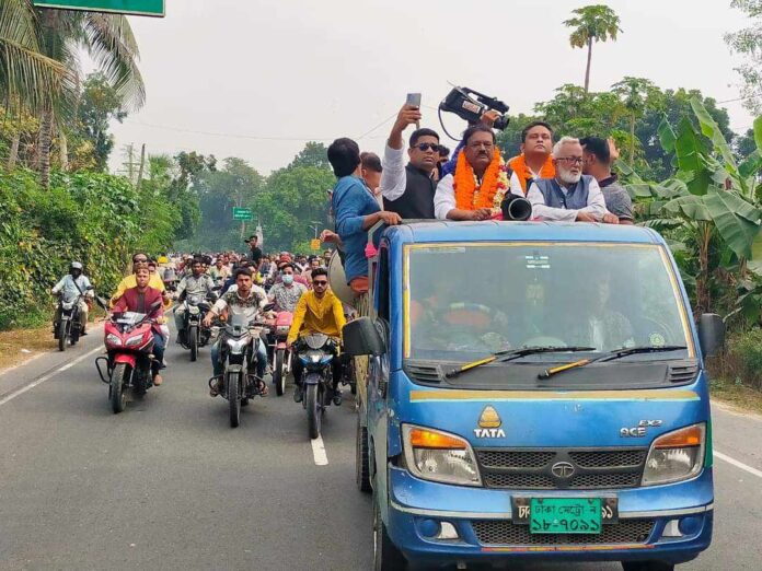 নিজস্ব প্রতিবেদক কুষ্টিয়াঃ ঢাকা থেকে সকালে রওনা দিয়েছেন কুষ্টিয়া- ৪ আসনের সাবেক সংসদ সদস্য ও দ্বাদশ জাতীয় সংসদ নির্বাচনে (কুমারখালী-খোকসা) আসনের স্বতন্ত্র প্রার্থী আব্দুর রউফ। তিনি আওয়ামী লীগের দলীয় মনোনয়ন না পেলেও দলের ডার্মি স্বতন্ত্র প্রার্থী হিসেবে নির্বাচনের আশা ব্যক্ত করায় তার কর্মী সমর্থকদের মধ্যে বিরাজ করছে উৎসবের আমেজ। আব্দুর রউফ (২৯ নভেম্বর) সকাল ১১ টার দিকে কুমারখালীতে প্রথমবরের মতো প্রবেশ করেন। তাকে ঢোলডগ্গর বাজিয়ে হাজারো মোটরসাইকেল শোভাযাত্রা নিয়ে ফুলেল শুভেচছা জানান তৃনমুলের নেতাকর্মী ও জনগন। হাজারো মোটরসাইকেল, ব্যান্ডপার্টি, শোভাযাত্রা নিয়ে তার নিজ নির্বাচনীয় এলাকায় প্রবেশ করেন তিনি। এসময় তিনি তার দলীয় নেতা-কর্মীদের হাত থেকে ফুলের শুভেচ্ছা জানানো হয়। পরে তিনি একটি ছাদখোলা গাড়িতে দাঁড়িয়ে জনগণকে শুভেচ্ছা জানাতে জানাতে কুমারখালী শহর ঘুরে তার নিজ এলাকায় গিয়ে পৌঁছান। নিজ নির্বাচনীয় এলাকায় আসার পরে আব্দুর রউফ তার কর্মীদের উদ্দেশ্য বলেন, আমি নৌকার বিপক্ষে নই। আমি এই এলাকার মানুষের মুখে হাসি ফোটানোর জন্য প্রার্থী হয়েছি। আমি আওয়ামী লীগের লোক, আমি জাতির জনক বঙ্গবন্ধু শেখ মুজিবের আদর্শ বুকে ধারণ করে প্রধানমন্ত্রী শেখ হাসিনার বার্তা মানুষের মাঝে ছড়িয়ে দিতে কাজ করছি। জননেত্রী শেখ হাসিনার নেতৃত্বে সারা জীবন আওয়ামী লীগ করে যাব। আব্দুর রউফ আরো বলেন, তিনি (কুমারখালী-খোকসা) আসনের জনগণের ইচ্ছায় রাজনীতি করেন। জনগণের ভালোবাসা ও সমর্থন তাঁকে এ পর্যন্ত এনেছে। জনগণ তা ভোটের মাধ্যমে বুঝিয়ে দেবেন বলে তিনি আশা প্রকাশ করেন।সব শেষে তিনি আরো বলেন, আমি কৃতজ্ঞ আমার প্রাণ প্রিয় কুমারখালী ও খোকসার সাধারন মানুষের প্রতি। আমি আপনাদের ভালোবাসায় সিক্ত। আপনাদের জন্য আমার ভালোবাসা এবং কৃতজ্ঞতা আজীবন থাকবে। আমার ভবিষ্যতের প্রতিটি সাফল্য প্রতিটি সুখ আমি আপনাদের সাথে ভাগ করে নিতে চাই। আমি আপনাদের সাথে ছিলাম আছি এবং থাকবো। আপনাদেরকে আমার পাশে চাই অতীতের মত। দেখা হবে বিজয়ে ইনশাআল্লাহ।