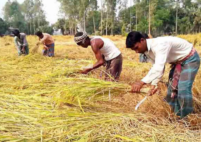 স্টাফ রিপোর্টার : চলতি আমন মৌসুমে চাষিরা অক্লান্ত পরিশ্রম করে ধান ঘরে তুলতে শুরু করেছেন। তবে হাসি নেই চাষিদের মুখে। বিশেষ করে, মৌসুমজুড়ে বৈরী আবহাওয়ার কারণে বৃষ্টি না হওয়ায় মটরে পানি তুলে জমি প্রস্তুত ও চাষ শুরু করে কৃষক। পরে তুলনামূলক উচ্চ মূল্যে সার, শ্রমিক, কীটনাশক খরচ করে যখন ধান পাকার সময় আসলো তখনই অধিকাংশ ক্ষেতে বাদামি গাছ ফড়িংয়ের (কারেন্ট পোকা) আক্রমণ করে। এতে অনেক খরচ করে আবারও কীটনাশক ব্যবহার ও অন্যান্য পদ্ধতিতে পরিস্থিতি নিয়ন্ত্রণ আসে। উৎপাদন খরচ ও বাজার দরের বিরাট পার্থক্যের কারণে এবার হতাশাগ্রস্ত কৃষকের মুখে হাসি ফোটেনি। অধিকাংশ চাষি ধান বিক্রির টাকায় সার-বীজ-কীটনাশকের দোকানের দেনাও শোধ করতে পারবেন না। এভাবে লোকশানের কারণে কৃষি কাজে আগ্রহ হারাচ্ছেন অনেকে। যশোরের চৌগাছা উপজেলা কৃষি অফিস সূত্রে জানা গেছে, চলতি আমন মৌসুমে এ উপজেলায় আমন ধানের আবাদ হয়েছে ১৮ হাজার ২৪০ হেক্টর জমিতে। যার উৎপাদন লক্ষ্যমাত্রা ধরা হয়েছে ৭৯ হাজার ৮৫০ মেট্রিক টন। মৌসুমের শুরুতে আবহাওয়া কিছুটা খারাপ থাকায় উৎপাদন খরচ বাড়লেও ফলনে খুব বেশি প্রভাব পড়েনি। বৃষ্টিপাত কম হওয়ার কারণে কারেন্ট পোকার আক্রমণ বেশি ছিল। এতে বেড়েছে কীটনাশক ব্যয়। গত ১০ দিন আগে থেকে এ অঞ্চলে ধান কাটা শুরু হয়েছে। এলাকার সম্পূর্ণ কাটা ঝাড়া শেষ করতে আরও অন্তত ১০-১৫দিন সময় লাগবে বলে জানিয়েছেন চাষিরা। সরেজমিনে জানা যায়, যে-সব এলাকার ক্ষেতে কারেন্ট পোকার আক্রমণ হয়নি সেসব এলাকার চাষিরা ধানের বাম্পার ফলন পেয়েছেন। তবুও উৎপাদন খরচ ও বাজার দরের পার্থক্যের কারণেই হতাশাগ্রস্ত বেশিরভাগ চাষি। তাদের মুখে নতুন ধান ঘরে তোলার আনন্দ আসেনি। তারপরও ধান বাড়ি ওঠানোকে মাথায় রেখেই ‘সার-কীটনাশকের দোকান আর সেচ পাম্প-ট্রাক্টর মালিকরা’ তাদের বকেয়া আদায়ে হালখাতার তোড়জোড় শুরু করেছেন। এই হালখাতা নামটি হতাশাগ্রস্ত কৃষকের কাছে যেন বিষফোড়া। অধিকাংশ কৃষকের দাবি, ধানের উৎপাদন ভালো হলেও তাদের খরচের টাকা উঠছে না। এটাই এখন বড় সমস্যা। উপজেলার সিংহঝুলি গ্রামের যুবক কৃষক টনিরাজ খান, সাইফুদ্দিন আহমদ, শিমুল কবিরাজ, কাজল খান, সাইফুল ইসলামসহ কয়েকজন কৃষক জানান, তাদের জায়গা জমি কম থাকায় তারা অন্যের জমি লিজ নিয়ে ধান চাষ করে থাকেন, ফলনও হয়েছে ভালো কিন্তু তারপরও খরচের টাকা উঠছে না। তারা খরচের হিসেব দিয়ে বলেন, এ বছর এক বিঘা লিজ নিতে জমির মালিককে দিতে হয়েছে সর্বনিম্ন ৮ হাজার টাকা। প্রথমেই এক বিঘা জমির জন্য বীজতলা তৈরি করে চারা উৎপাদন করতে খরচ হয় ২ হাজার টাকা। তারপর জমি চাষ করতে লাগে ১৫শ’ টাকা। জমিতে চারা রোপণ করতে খরচ হয়েছে ২ হাজার টাকা, নিড়ানি বাবদ ব্যয় হয়েছে প্রায় আড়াই হাজার টাকা, ত
