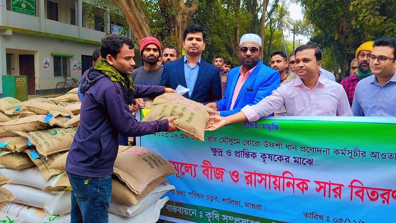 শালিখায় কৃষকের মাঝে বিনামূল্যে বীজ ও রসায়নিক সার বিতরণ