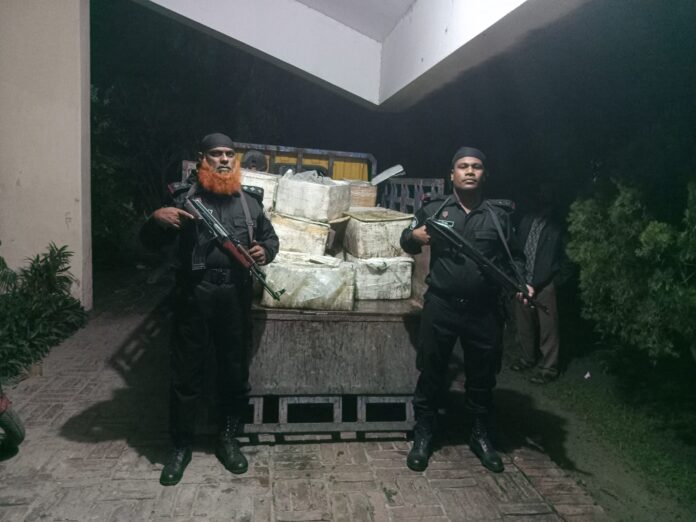 যশোর অফিস : যশোরে যাত্রীবাহী বাস থেকে ৫৫০ কেজি জেলি পুশ করা চিংড়ি জব্দ করে ধ্বংস করেছে র্যাবের ভ্রাম্যমাণ আদালত। রোববার (১০ ডিসেম্বর) গভীর রাত ২টার দিকে শহরের মনিহার মোড়ে অভিযান চালিয়ে এ ভেজাল চিংড়ি জব্দ করে র্যাব-৬ যশোর ক্যাম্পের সদস্যরা। রোববার দুপুরে এক প্রেস বিজ্ঞপ্তিতে এ তথ্য জানায় র্যাব-৬ যশোরের কোম্পানি কমান্ডার মেজর মোহাম্মদ সাকিব হোসেন।