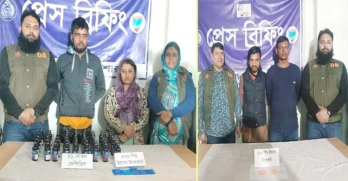 যশোরে ফেনসিডিল ও ইয়াবাসহ ৪ মাদক ব্যবসায়ী আটক