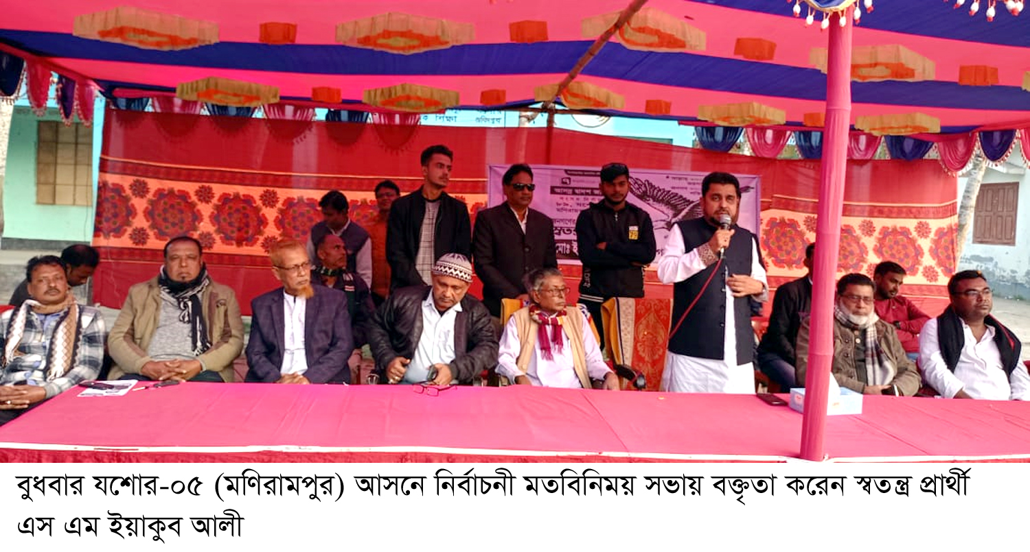 মণিরামপুর : দ্বাদশ জাতীয় সংসদ নির্বাচনকে সামনে রেখে যশোর-০৫ (মণিরামপুর) আসনে নির্বাচনী প্রচারণা করেছেন স্বতন্ত্র প্রার্থী এস এম ইয়াকুব আলী। বুধবার বিকেলে উপজেলার কালার মোড়, মনোহরপুর ও গোপালপুর বাজারে এক মতবিনিময় সভার মাধ্যমে ঈগল প্রতীকের প্রচারণা করেন তিনি। এসময় এস ইয়াকুব আলী বলেন, মাননীয় প্রধানমন্ত্রী শেখ হাসিনা দলীয় প্রার্থীদের পাশাপাশি স্বতন্ত্র প্রার্থী হিসেবে জনপ্রিয় নেতাদের নির্বাচনে অংশ নিতে বলেছেন। আমি প্রধানমন্ত্রী শেখ হাসিনার প্রার্থী। আশি শতভাগ আশাবাদী সুষ্ঠু নির্বাচনের মাধ্যমে আমার ঈগল প্রতীকে ভোট দিয়ে আমাকে নির্বাচিত কববেন।