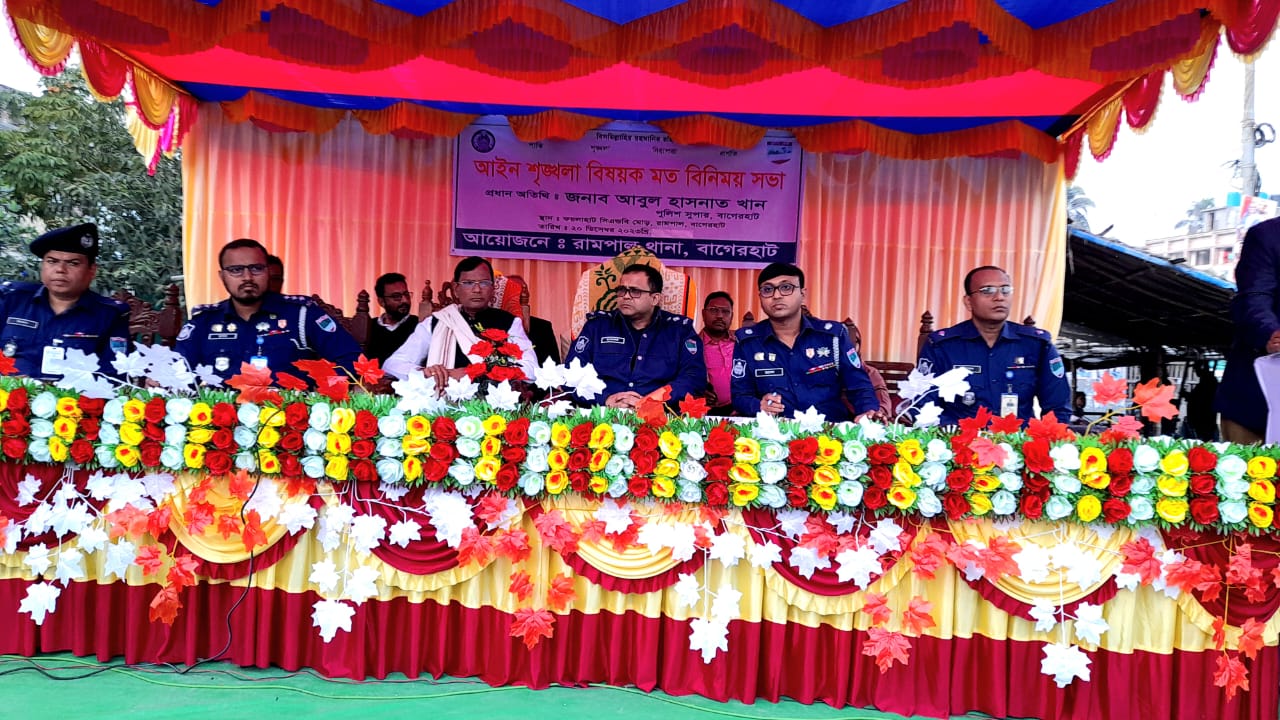 আইন শৃঙ্খলা বিষয়ক মতবিনিময় সভায় প্রধান অতিথির বক্তব্যে বাগেরহাটের পুলিশ সুপার আবুল হাসনাত খান বলেন, পুলিশই জনতা, জনতাই পুলিশ। আমরা আপনাদের নিরাপত্তা নিশ্চিতে কাজ করছি। দ্বাদশ জাতীয় সংসদ নির্বাচনে প্রার্থীদের মধ্যে প্রতিদ্বন্দ্বিতা থাকবে। কিন্তু শান্তিপূর্ণ সহাবস্থানের ভিত্তিতে সবাইকে কাজ করতে হবে। শান্তিপূর্ণ ও সুষ্ঠ স্বাভাবিক নির্বাচন অনুষ্ঠানের জন্য আমরা কাজ করছি। কেউ যেন বিশৃঙ্খলা সৃষ্টি করতে না পারে সেদিকে সবাই সজাগ থাকবেন। কোন প্রার্থীর অধিকার যেন ক্ষুন্ন না হয় সেটি নিশ্চিত করতে হবে। কেউ বিশৃঙ্খলা সৃষ্টি করলে বা করার অপচেষ্টা চালালে তাঁকে আইনের আওতায আনা হবে। বিশৃঙ্খলা সৃষ্টিকারীদের কোন প্রকার ছাড় দেয়া হবে না। রামপালবাসীর নিরাপত্তার স্বার্থে যা যা করা যায় সেটি আমরা করবো। এ জন্য সকলের সার্বিক সহযোগিতা কামনা করছি।